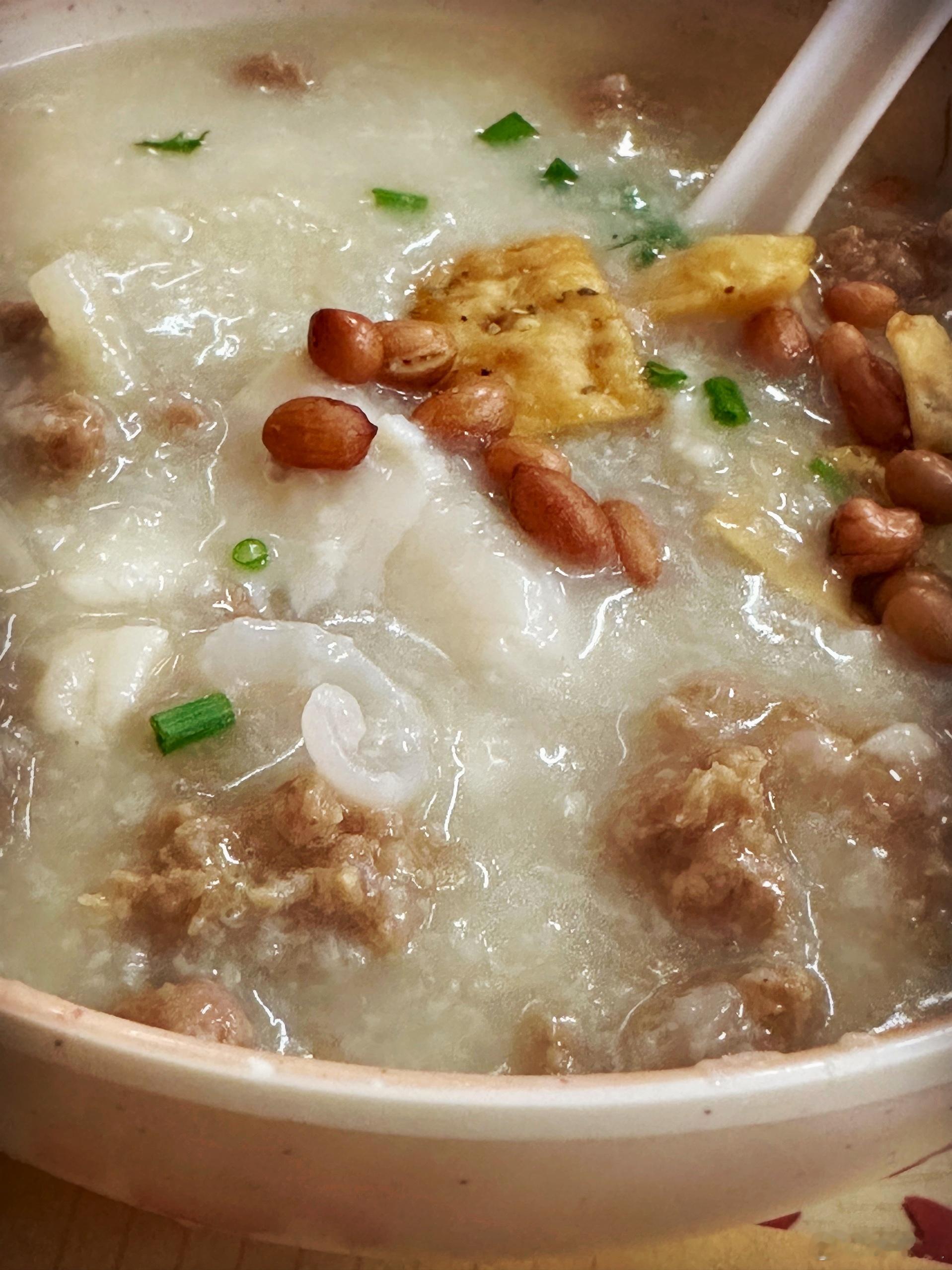 开着车乱逛。静安寺这一带倒是很有人气。街角像武康大楼一样站满了拍照的人。北京路云峰剧院路两边全是便宜的小食店。扎进人堆里宵夜,猪肝姜汤面要了公仔面,艇仔粥豪华得满满好料,也不过四十文一大碗。加胡椒吃得满头汗。咦,葱油餐肉滑蛋,午餐肉还能做葱油的。看名字就特别粗豪有味的样子。有人气果然有胃口。闹哄哄的才是过节啊。