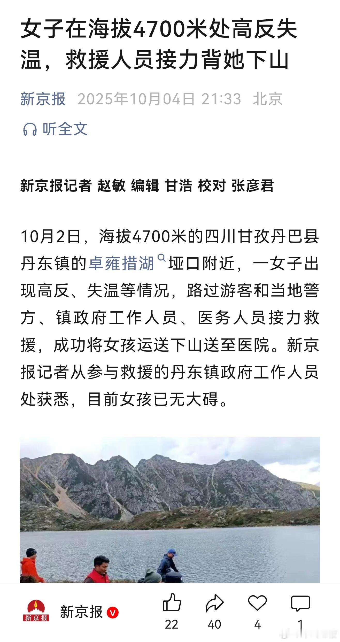 4700米高原失温高反,救援人员跑步上山,接力把人背下来