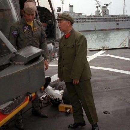 这一张老照片让人泪崩,镜头中这个踮起脚尖,参观美军航母的军人,正是我国“航母之父”刘华清上将。 你知道吗?1980年的时候,咱们国家派了个军事代表团去美国访问,这里面就有刘华清老将军!那会儿老将军都已经64岁了,头发都有些花白,可精神头却特别足,走到哪儿都挺直着腰板,一看就是常年在部队里练出来的硬朗模样。 那时候的中国啊,刚经历完不少事儿,各行各业都得从头慢慢恢复,正处在百废待兴的阶段,军事装备这块儿更是急着要追赶。也正是因为这样,老将军才被委以重任,当上了副总参谋长,专门管军事装备的事儿,身上的担子重得很。 要说起这位老将军的经历,那可太传奇了!早在红军时期,他就跟着队伍参加革命了,一辈子都在枪林弹雨里摸爬滚打,你想啊,这辈子经历过这么多大风大浪,他这辈子啥场面没见过,啥困难没扛过,何曾怕过啥呀! 可就算老将军这么勇敢,他心里也有块疙瘩——他太清楚“落后就要挨打”这个道理了!那时候咱们国家的军事装备跟美国比,差得不是一星半点儿,他看着就着急啊!后来他还专门说过一句话:“中国不建航母,我死不瞑目。”这句话说得特别坚定,听着就让人心里又感动又难受,能看出来他多盼着咱们国家能有自己的航母,能在军事上硬气起来。 就说那次访美参观美军装备吧,老将军看着那些先进的武器装备,眼睛都亮了,可因为个子不算高,有些细节看不太清,他就下意识地踮起脚尖,脖子也往前伸着,特别认真地盯着看,生怕错过任何一个地方。后来这张踮脚看装备的照片传回来,无数国人看着都心疼得不行——这么大年纪的老将军,为了国家的军事发展,还这么拼,谁看了能不感动啊! 不过老将军您放心,现在咱们国家早就不是当年的样子了!咱们已经有好几艘航母了,辽宁舰、山东舰、福建舰一艘接一艘地亮相,在海上威风凛凛的,咱们的海军实力也越来越强。这盛世啊,就跟您当年期盼的一模一样,您要是泉下有知,肯定会特别欣慰的!