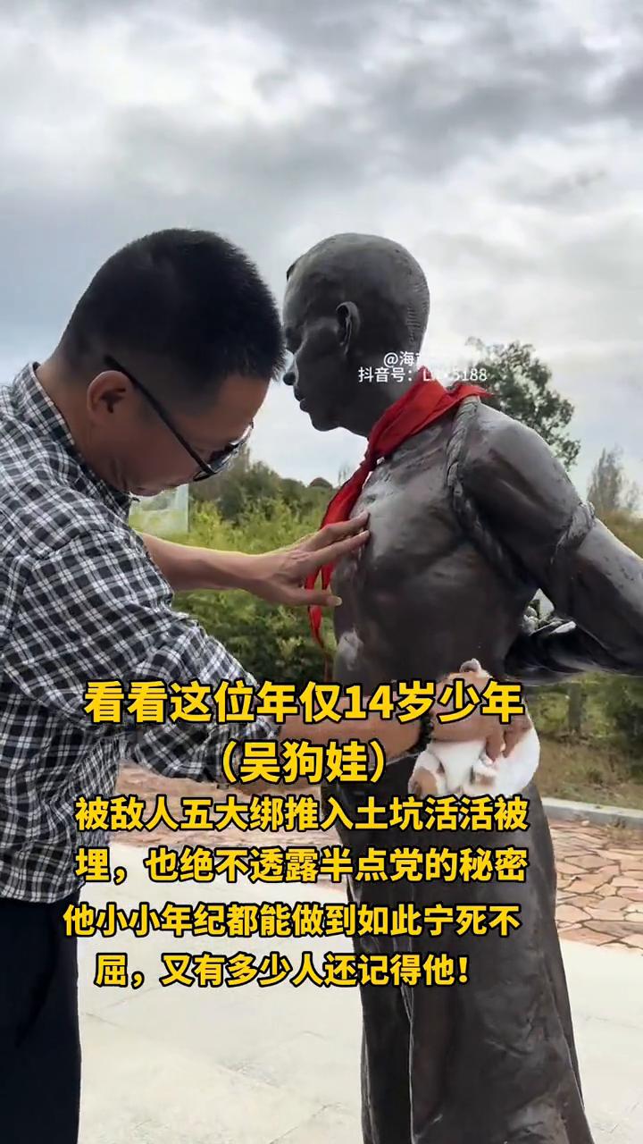 看看这位年仅14岁少年(吴狗娃),被敌人五大绑推入土坑活活被埋,也绝不透露半点党的秘密。他小小年纪都能做到如此宁死不屈,又有多少人还记得他!