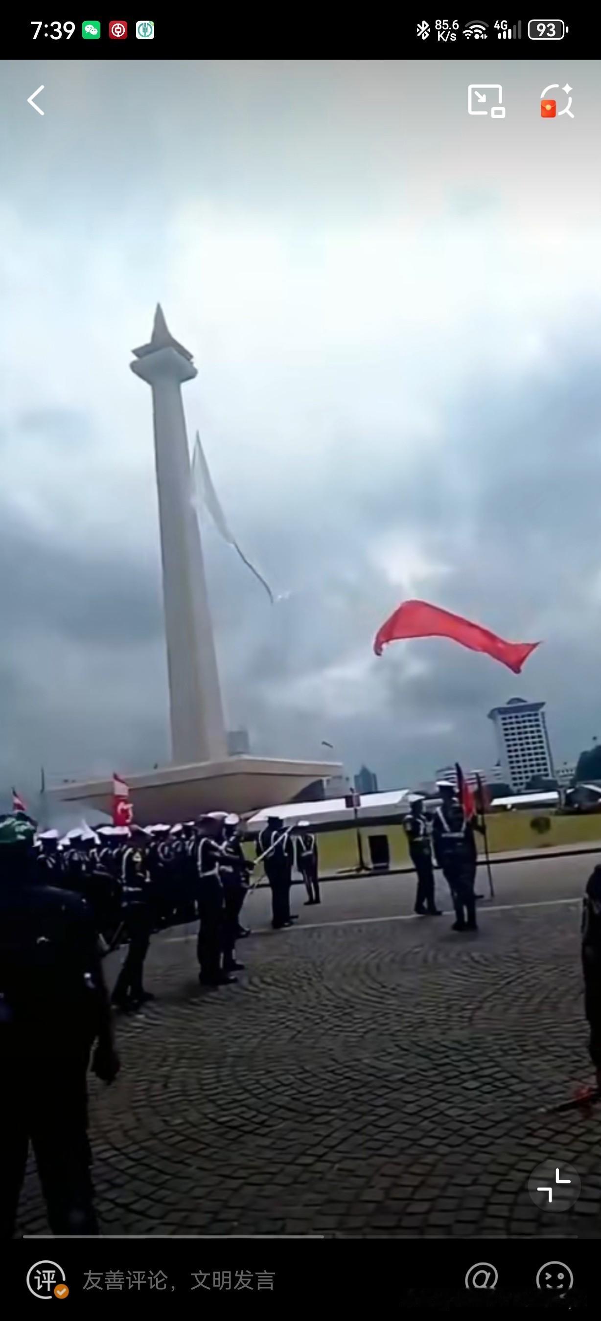 匪夷所思!印尼建军80周年庆典中,印尼国旗竟然裂成了两半……