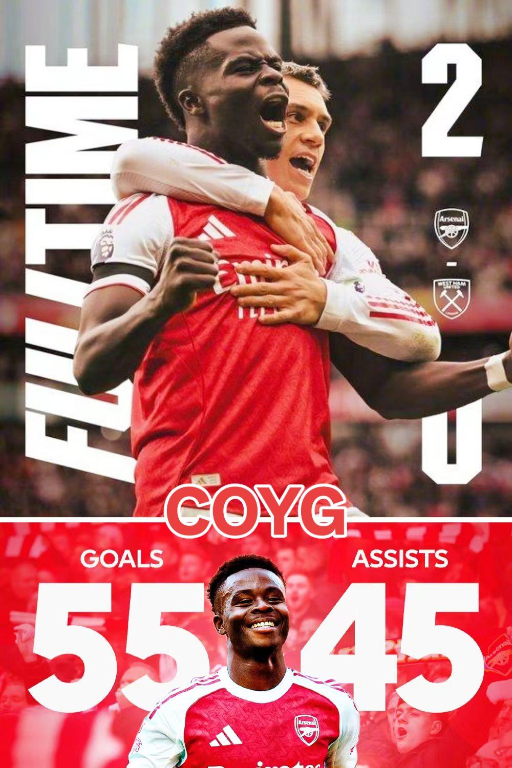 赖斯补射破门,萨卡点球命中。 萨卡两百场里程碑,并达成参与100球,Star Boy永远是我抢手头牌,只是今天被纠缠得不轻还出了鼻血,国际比赛日好好休息。赖斯补射入网,有情有义面对旧主没有庆祝,希望伤病不会太严重。厄德高真的是运气不好,但膝盖硬伤应该问题不大,两人最终伤情还需等待最终检查结果。约克雷斯依旧很拼,又是跟对方后卫打了一场摔跤搏击,但从不抱怨起身继续干,别着急,如此下去必会进球。苏维门迪的传球真的精彩,状态不断提升和逐渐适应球队后,上限更高。艾泽的动作也在逐渐放松,相信他前场万金油的能力。后防表现依旧稳妥,额外称赞一手廷伯,纯战士且技术细腻,但踢法有些凶悍,还是要避免受伤。 阿森纳顺利拿下对手后,切尔西2-1绝杀了利物浦,这也让阿森纳成功登顶。不必去在意排名,也不用看得那么远,我们只在意每个下一场,一场一场稳稳地啃下对手就行。接下来国际比赛日到来,球员能够得到一定的休整,但希望各位都不要再被伤病所牵连。10月19日阿森纳将客场挑战富勒姆,期待各位的表现。 加油抢手!胜利属于我们! COYG!@阿森纳足球俱乐部 英超 阿森纳