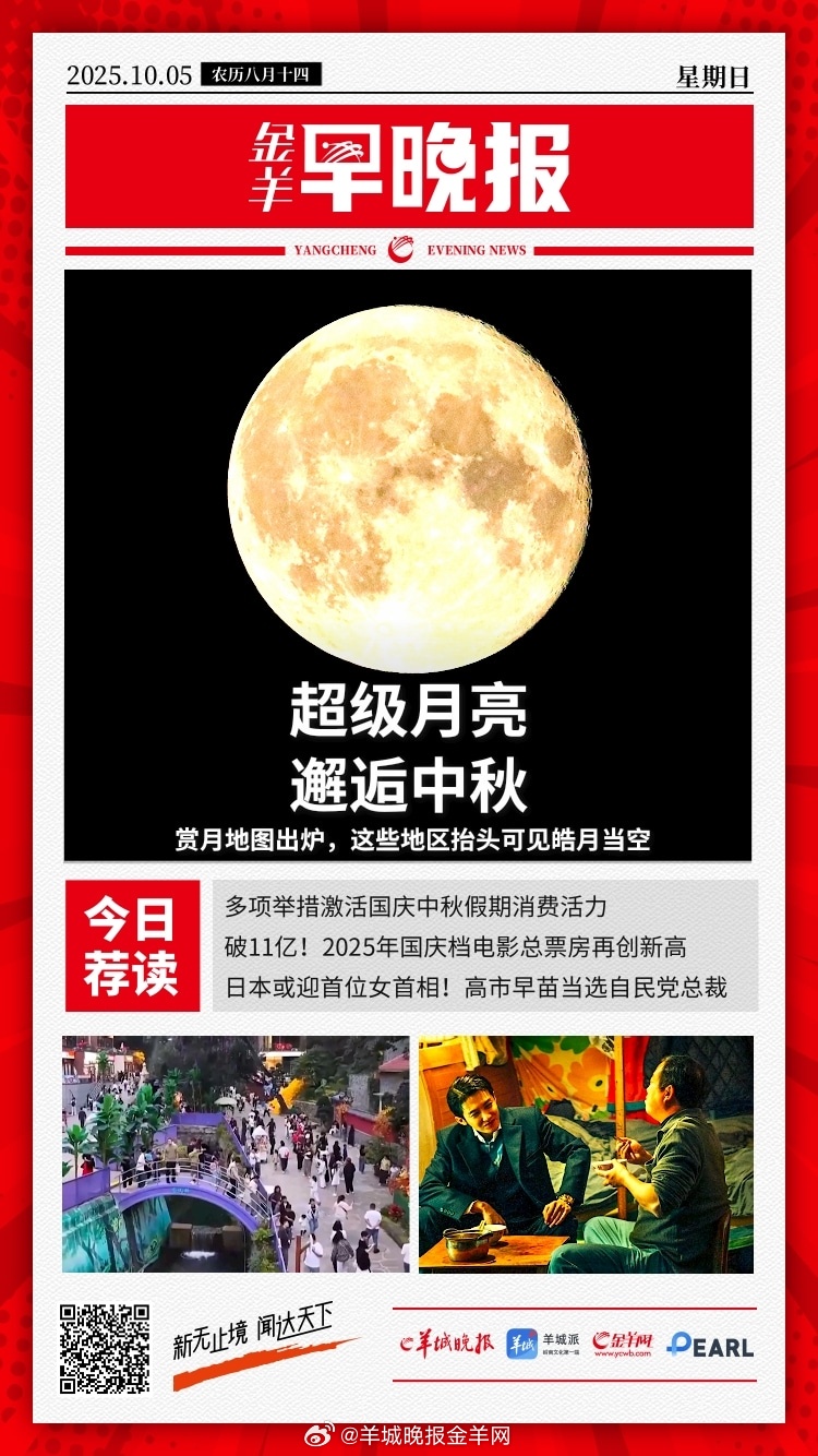 #金羊早晚报# 今年首个台风红色预警!“麦德姆”将于广东电白至海南琼海一带沿海登陆 多项举措激活国庆中秋假期消费活力 超级月亮邂逅中秋!赏月地图出炉:这些地区抬头可见皓月当空 假期进行时,小心“低价景区门票”,别让假票毁了好心情 晓华理发店已没了爆火时的人潮 曾3天睡1.5小时的晓华睡到自然醒 官方回应:新郎跳河,与彩礼无关,或为矛盾长期积累所致 陈震发文致歉:是我的问题,全力配合解决问题中 杂技名家吴正丹 “跨界” 迷乒乓,最爱王楚钦孙颖莎赛场风采 破11亿!2025年国庆档电影总票房再创新高 央视官宣!谢娜:不敢相信我要主持央视中秋晚会 有媒体报道方媛已诞下第三胎,并称郭富城停工陪产 【WTT中国大满贯】王曼昱/蒯曼击败跨国女双组合,夺得国乒本站第二冠 日本或迎首位女首相!高市早苗当选自民党总裁,何许人也? 以官员称以军已被命令停止推进加沙城攻势 更多精彩报道,请扫码关注羊晚全媒体报道!#台风红色预警发布##晓华理发店已没了爆火时的人潮##郭富城回应三胎已出生#