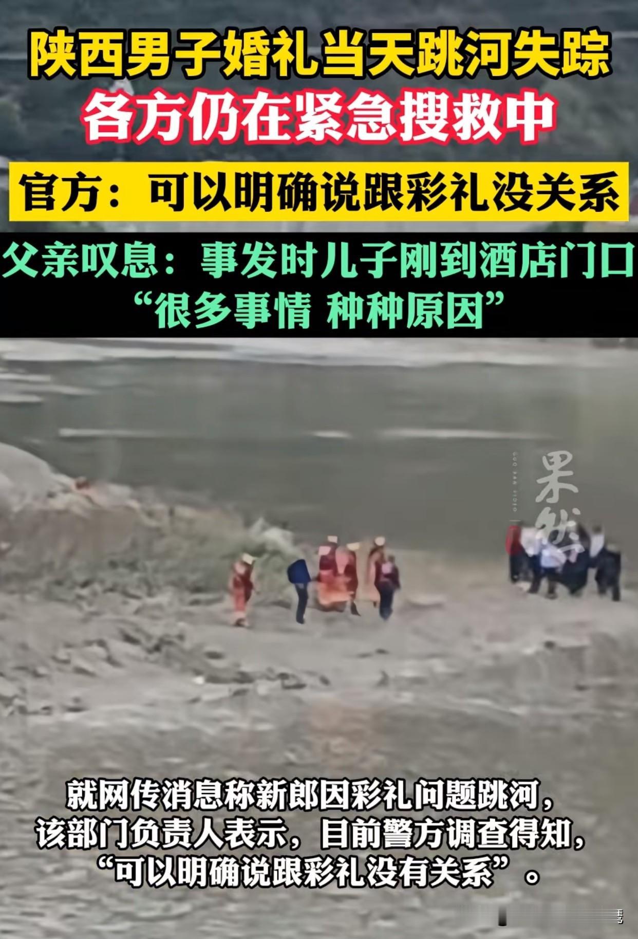 结婚当天新郎跳河失踪了,他父亲说不是因为彩礼闹的,而是各种事情凑在一起导致的。说