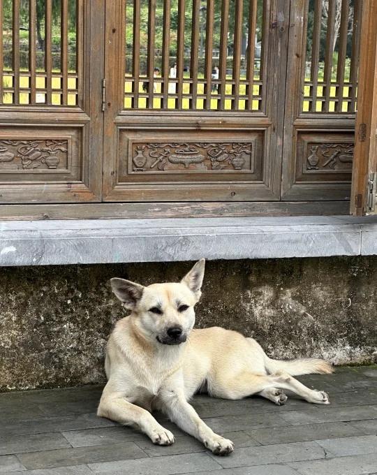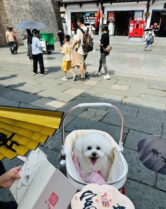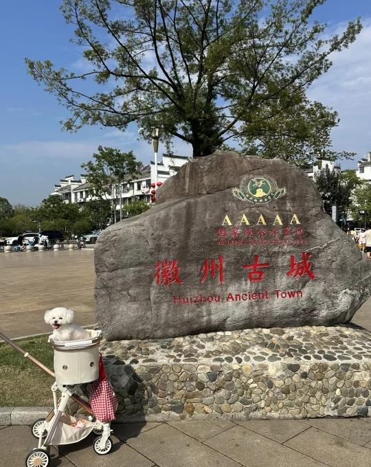 没想到皖南会这么热~但这里到处宠物友好哦 昨天的徽州古城逛半日游,但是车巨多人也很多,又非常热,所以浅逛了一下就开车去下一站宣城。 厦门自驾十几个小时来安徽,以为往北走就会比较凉快,没想到安徽这秋天似乎比厦门还热的感觉,哈哈哈,因为厦门有海风所以虽然热但不会太闷。前天在西递,小狗差点热中暑,于是今天成了重点保护对象,在户外逛个一个多小时就赶紧回车上了,边逛边时不时进店里吹空调,人手一把扇子,一家人轮流给它扇风,真是糖贵妃的待遇哈哈哈~不过黟县和歙县的景区都很宠物友好,都可以带着小狗进去,这里的人对狗都很友善,工作人员有的还会很亲切摸摸我们小狗头,景区里散养的狗狗们也都很松弛,真好狗狗 这边热得很 国庆出游 徽州