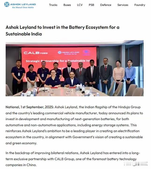据《印度时报》9月25日报道,中航锂电与印度兴都贾集团旗下阿肖克利兰公司签署20