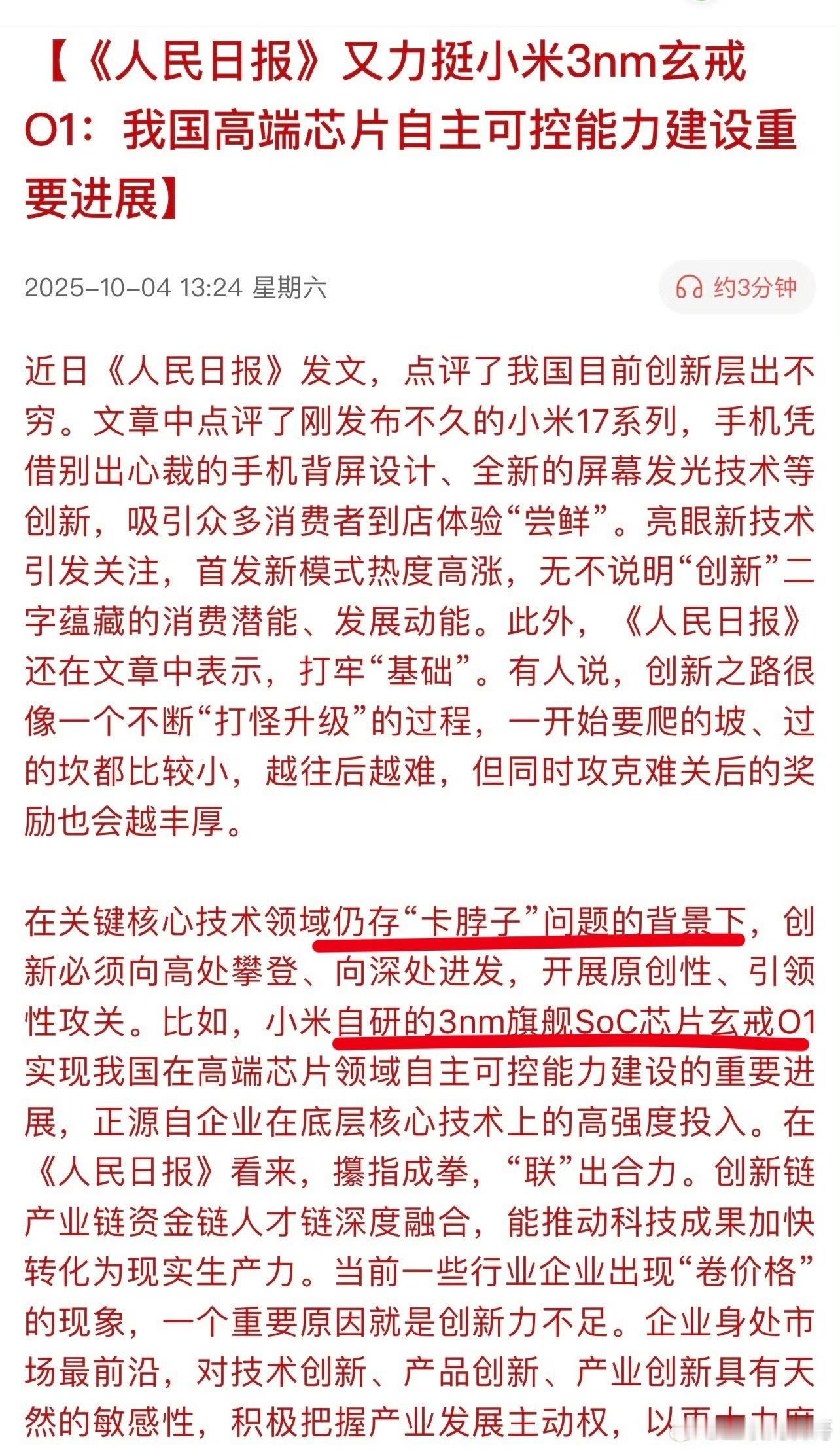 官媒再次力挺小米自研芯片!高端芯片自主可控能力的重要进展!