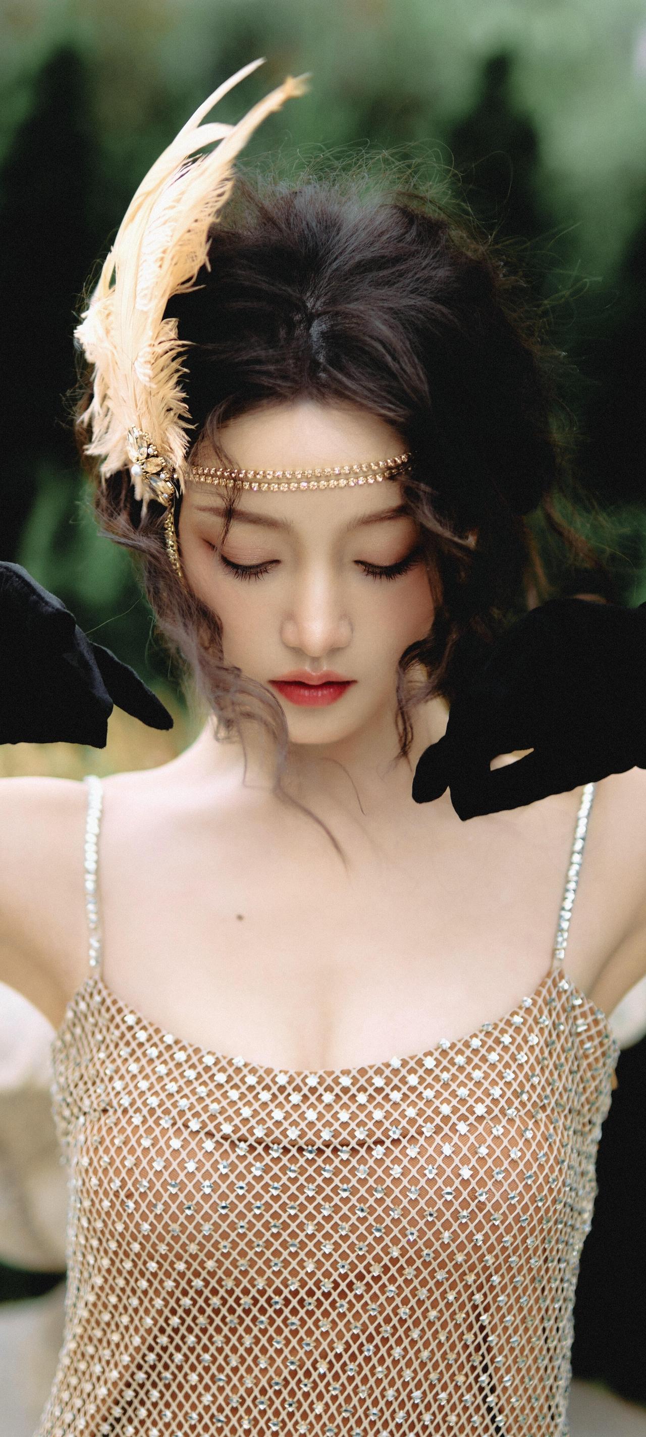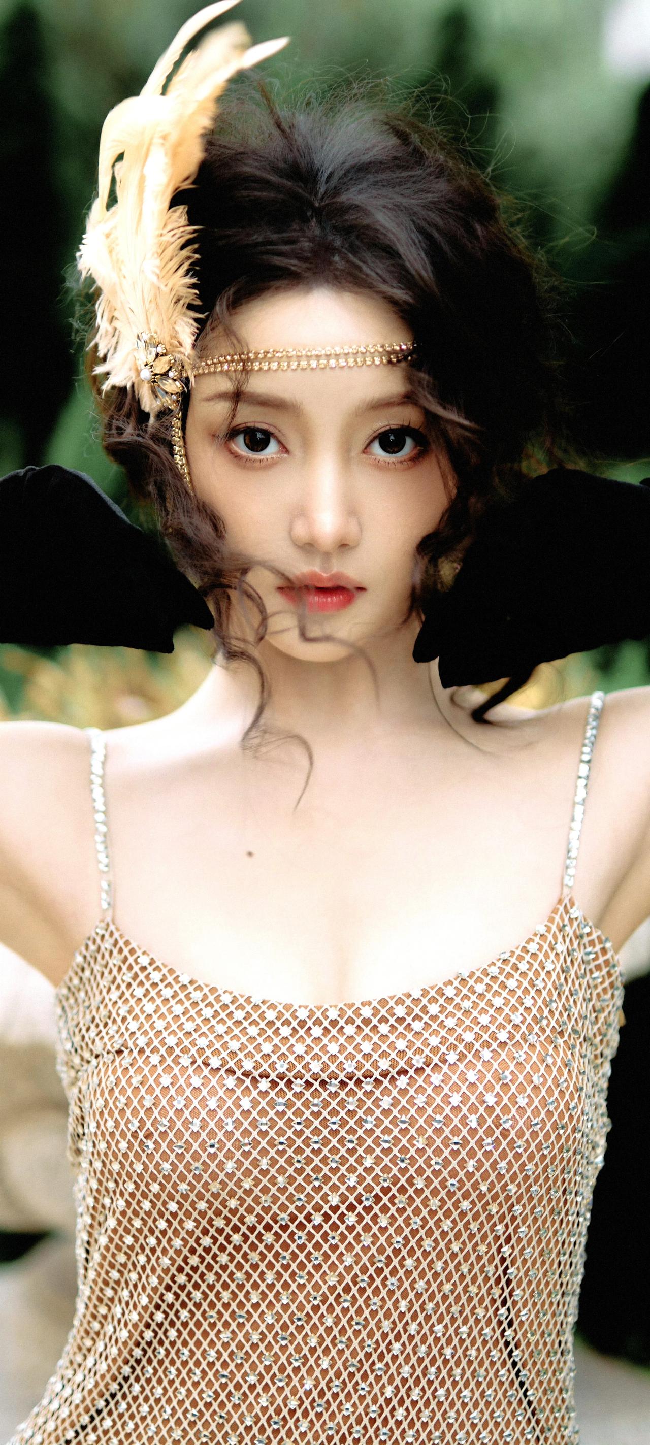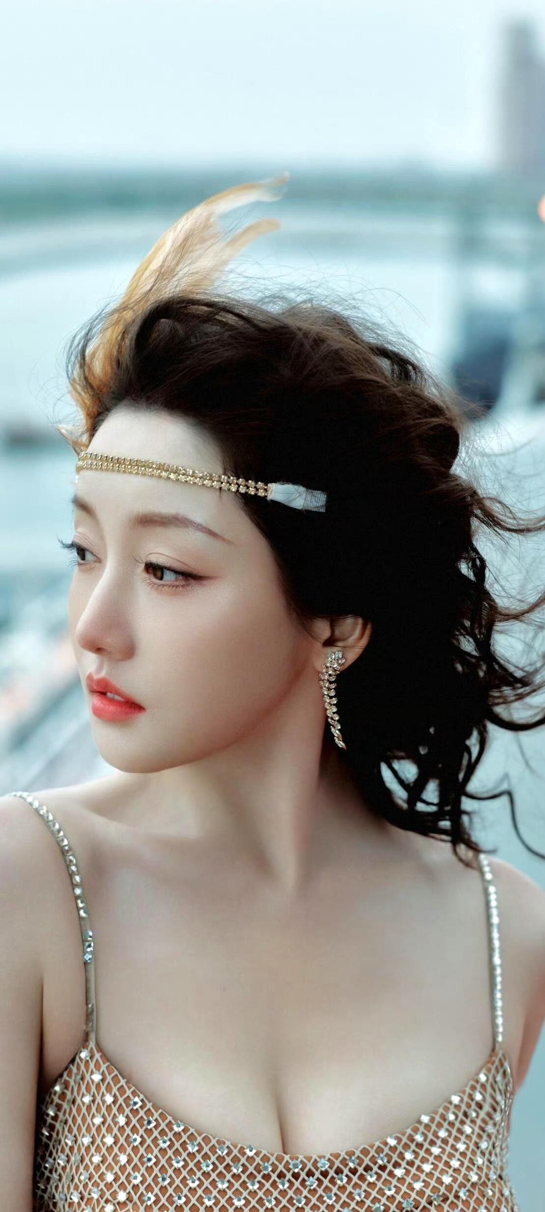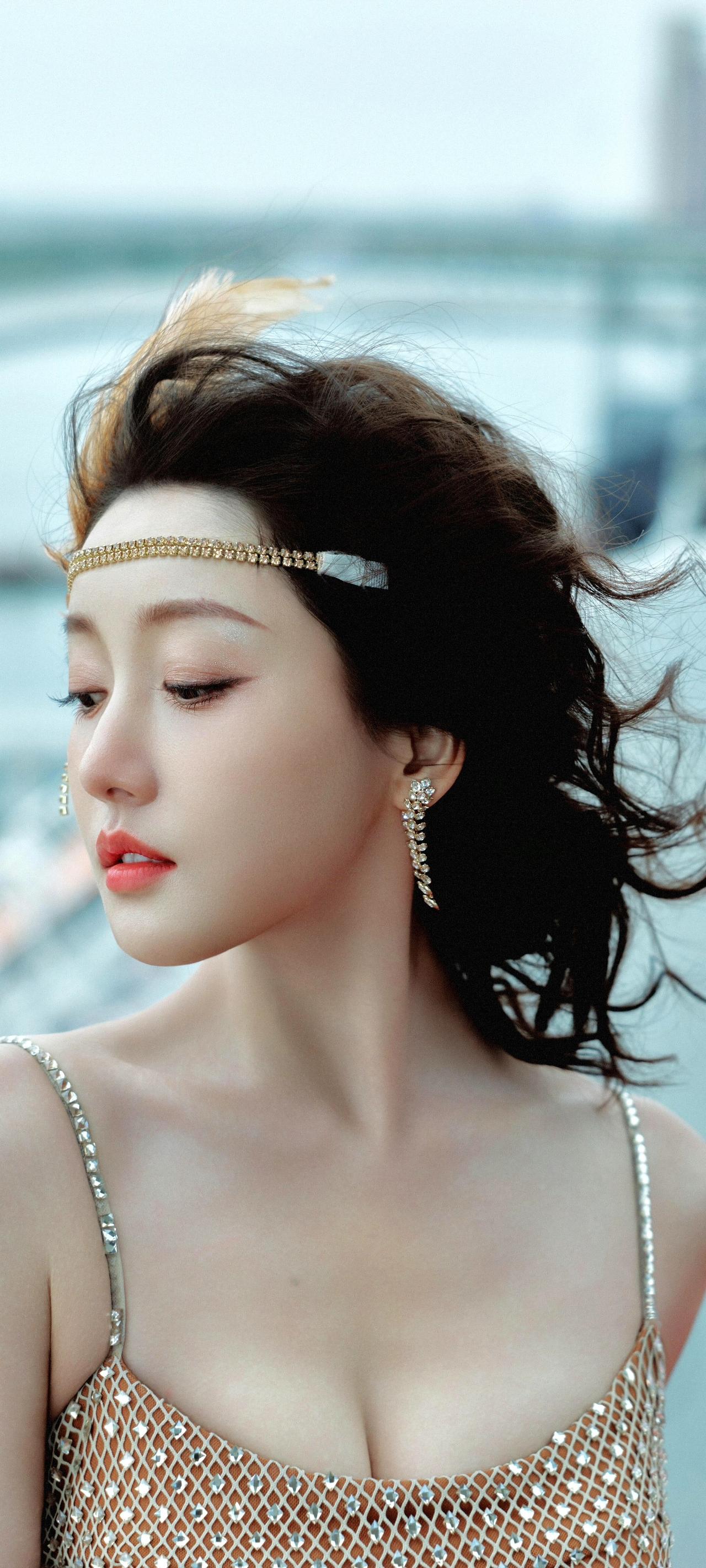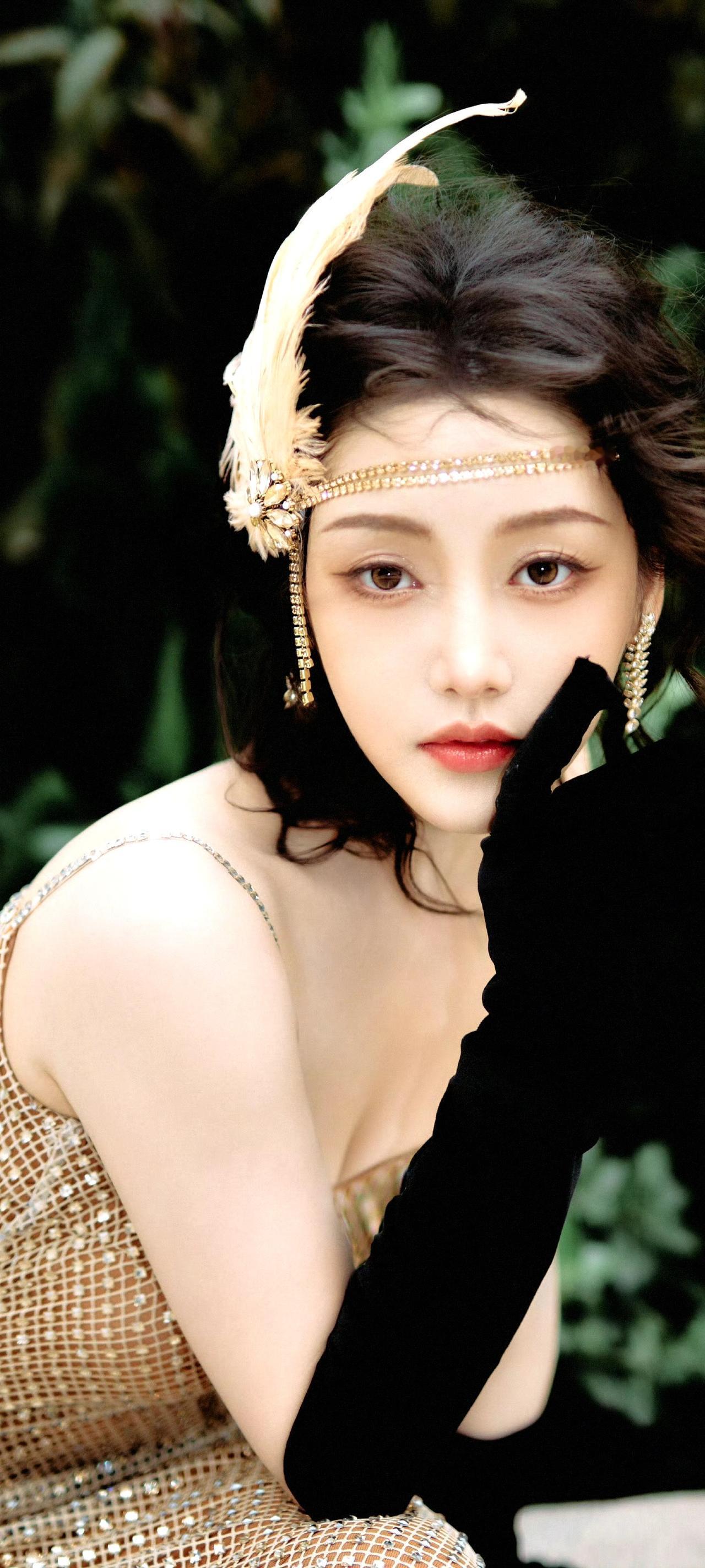 姜贞羽,闪耀的金色头饰与波光粼粼的裙摆相映成趣,宛如梦幻中的仙子。有哪些好看的壁纸或者屏保 养眼美景共享 姜贞羽 明星美女