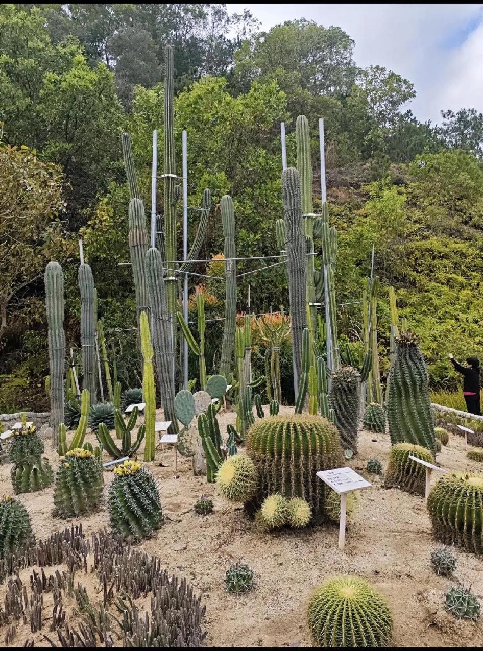这是厦门园林植物园的多肉植物区 这里有多种仙人掌科植物,如高大的武伦柱、浑圆的金琥球等,还有其他多肉植物,形成了独特的沙漠风情景观。 模拟沙漠环境,沙土种植利于透气疏水,植物形态各异,是网红打卡地。 该区域收集了50余科近3000种多肉植物,兼具科普教育、科学研究和园林艺术价值,游客可在此欣赏植物之美,了解其生长习性。
