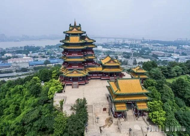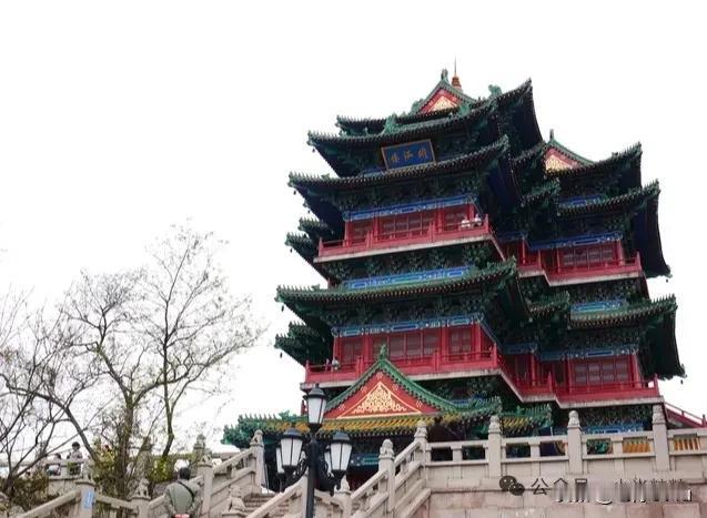 阅江楼位于江苏省南京市鼓楼区狮子山巅,是中国十大文化名楼之一、江南四大名楼之一,为国家AAAA级旅游景区,有“江南第一楼”之称。 历史沿革 - 始建于明洪武七年(1374年),明太祖朱元璋亲自撰写《阅江楼记》,并命文臣各写一篇,其中宋濂所作入选《古文观止》。但因多种原因,阅江楼仅完成地基便停建,出现“有记无楼”的状况。 - 1997年南京市人民政府批准复建,2001年9月竣工开放,结束了六百余年的“有记无楼”历史。 建筑特色 - 阅江楼外观4层,暗3层,共7层,总高52米,总建筑面积约5000平方米。整体呈“L”型,主翼面北,次翼面西,两翼可观赏长江风光。 - 建筑风格为典型的明代皇家风格,碧瓦朱楹、檐牙摩空,屋面采用黄色琉璃瓦,绿色琉璃瓦剪边,廊柱、门窗呈土红色。 内部陈设与特色景观 - 底层:有仿朱元璋龙椅(红木制成,重逾千斤,椅背雕九条龙)、康熙手书“治隆唐宋”金匾,还有全国最大的汉白玉碑刻,正面刻朱元璋《阅江楼记》,背面刻宋濂《阅江楼记》。 - 二层:展示明朝16位皇帝像、明朝版图、名家书画及科学技术,介绍郑和下西洋时期中国的先进文化。 - 三层:有中国最大的景德镇瓷画《郑和下西洋》,高12.8米、宽8米,全景式展现郑和下西洋的辉煌历史;还有复制的郑和宝船和巨大铁锚。 - 顶层:可观蟠龙藻井,金龙由整根香樟木雕刻而成,龙身用24K黄金(江宁金箔工艺)装饰,楼内外共用11公斤纯金。 - 景区还有全国最大的一对石狮子(高4.8米,重约30吨)、全国最大的仿西周后母戊鼎(重4吨)、全国最大的青铜浮雕(高2米、宽8米)等“全国之最”景观。 周边景点 - 玩咸亭、古炮台、孙中山阅江处、碑廊、古城墙、天妃宫、静海寺(《南京条约》签署地,内有天妃宫碑等古物)等。 旅游信息 - 开放时间:7:30-17:30(17:00停止售票) - 门票价格:40元(官网订票35元),儿童、老人、学生等有优惠政策。 - 交通路线:可乘坐公交10路、12路、21路、54路等至大桥饭店站、建宁路站或南京西站下车,步行可达。