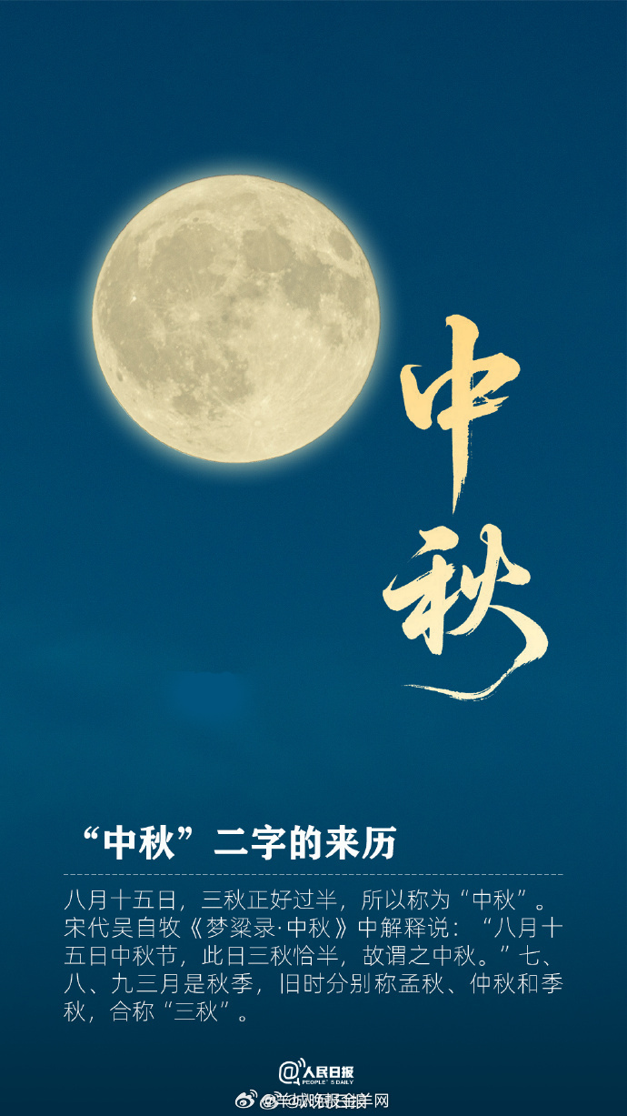 【#明天中秋你准备怎么过#】明天就是中秋节了,除了赏月和吃月饼,你还知道哪些中秋节的传统文化习俗?三秋过半称为“中秋”,你知道中秋名字的来历吗?月饼的演变历史是什么样的?网友:#中秋节蕴涵的传统文化太丰富了#!#文脉华章# ​​​#网络中国节# ​​​