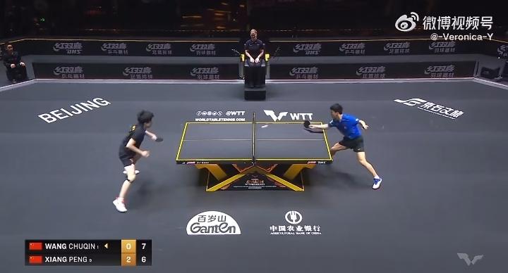 王楚钦🇨🇳扳回一局! 第三局向鹏🇨🇳8-11不敌王楚钦🇨🇳,大比分向鹏2-1领先! 我以为这一局王楚钦又要输了,毕竟向鹏追到8-8又要领先了,结果王楚钦在局末再没有给向鹏机会,连拿三分搞定了这一局。 前三局比分为向鹏11-9,11-6,8-11王楚钦。 王楚钦应该是有点累了,身兼三项,每天高强度的比赛,拿了两个冠军,太累了。 第四局向鹏6-5领先,他叫了暂停,暂停有效果,回来之后最终第四局向鹏🇨🇳11-8又胜了王楚钦🇨🇳,大比分向鹏3-1领先! 这是WTT中国大满贯男单半决赛,向鹏能制造冷门吗? 评论区继续播报战况!