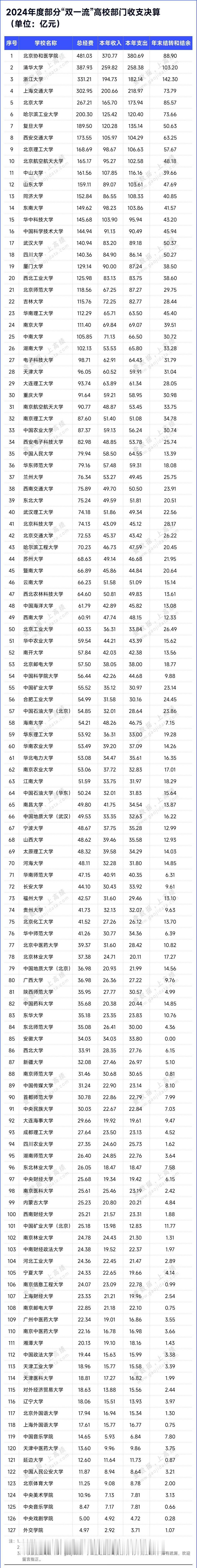 部分“双一流”高校2024决算。还好,没有亏损的!