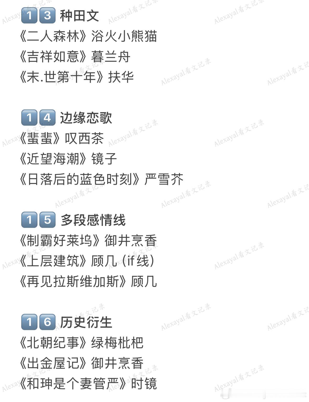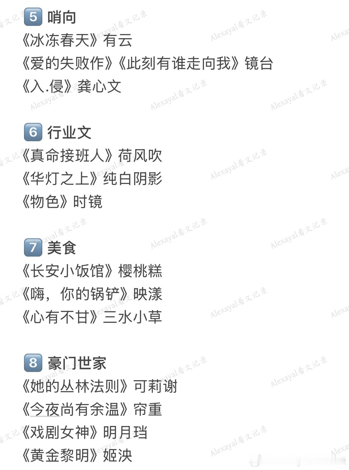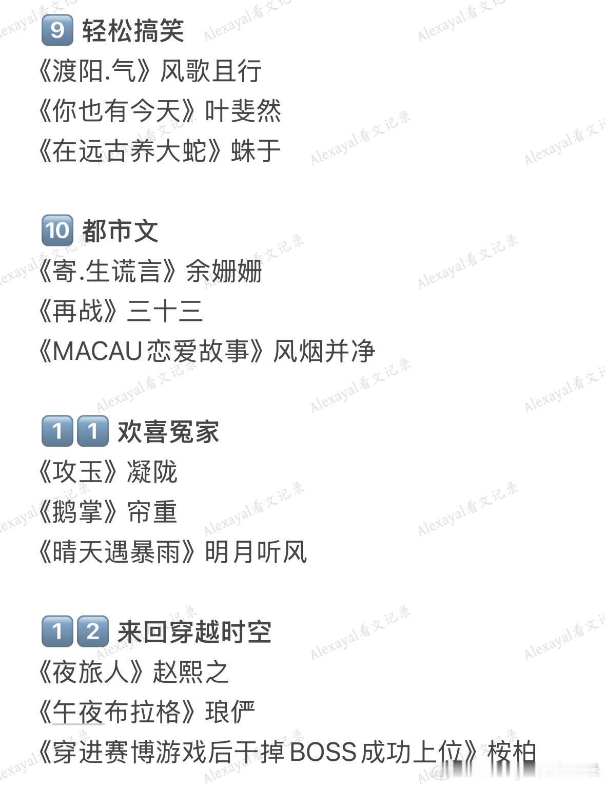 [微风] 各类型文天花板盘点5️⃣|不同标签的top小说