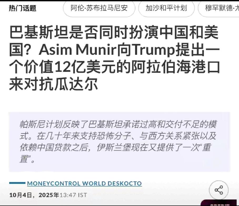 哟呵!伊斯兰堡搞“重置”,想脚踩两只船?这块铁还需敲打敲打 外媒这个信息看得人先是一愣,后来一想,这也是预料之中的事儿,只能说被我言中了…… 想想看,这家伙打印成名后,不仅成了老特座上宾,还成了白宫、五角大楼的常客,这里面要说没问题谁信? 而今直接上菜了,让鹰酱在瓜达尔港附近搞一个阿拉伯海港,相距仅120公里。 这不是平衡,而是伊斯兰堡的“重置”,在向东看,向西看之间寻求平衡。 这个信号不一般,这块铁不敲打敲打,让其及时刹车,很可能会现难以控制的局面。 您说对吧?