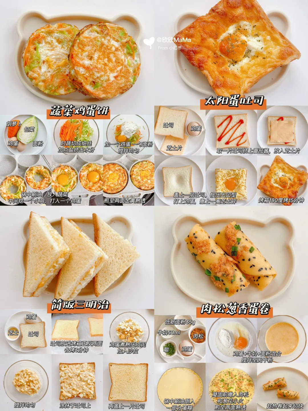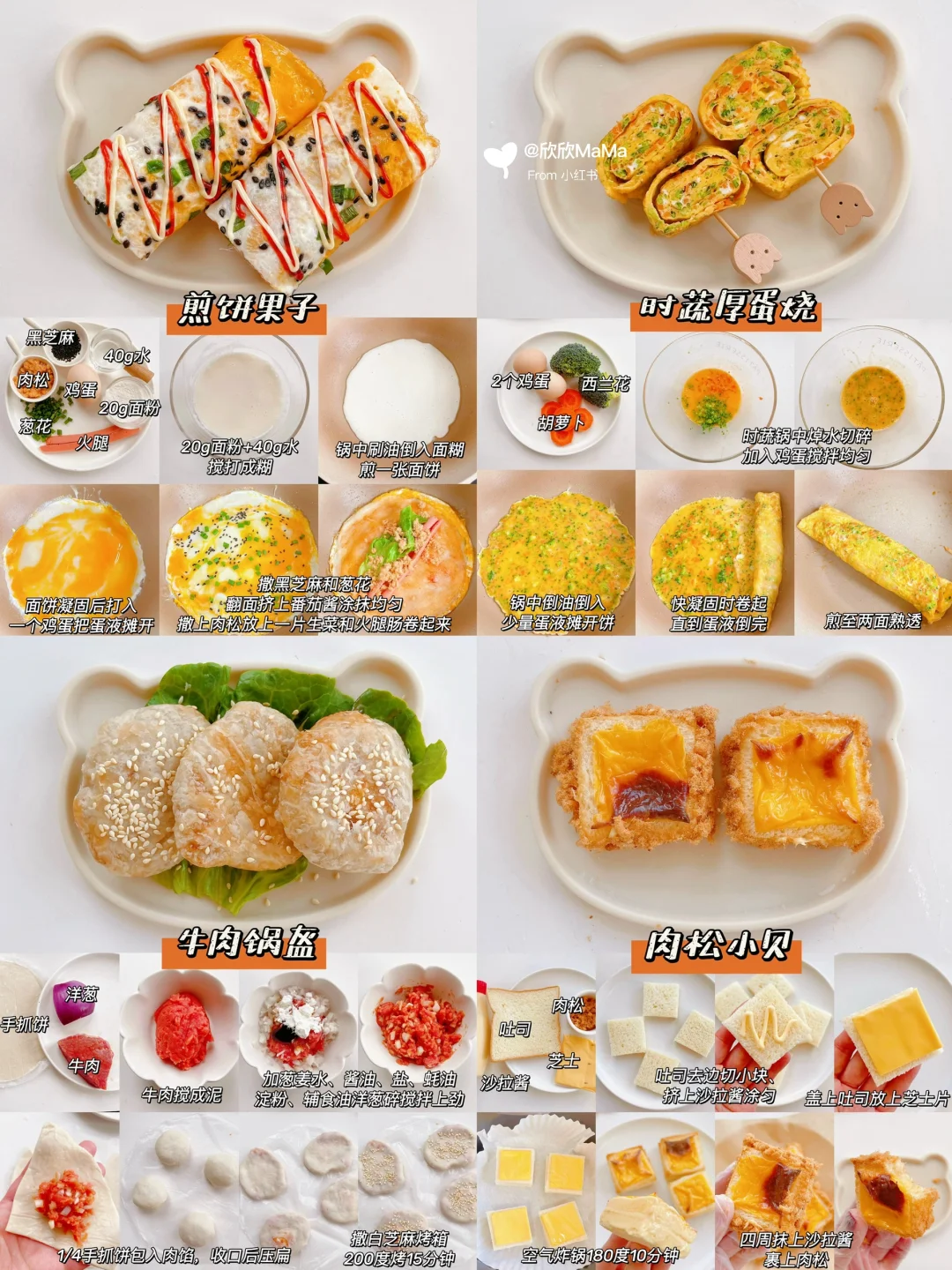 今天分享24款敲好吃的营养早餐,做法快手, 搭配米糊,牛奶就是健康的一餐啦! 妈妈们安排起来呀! 🌟食材发小根据宝宝咀嚼能力来安排 🌟1岁以上宝宝可以加盐、酱油,一岁以下可以加点香菇粉、虾皮粉