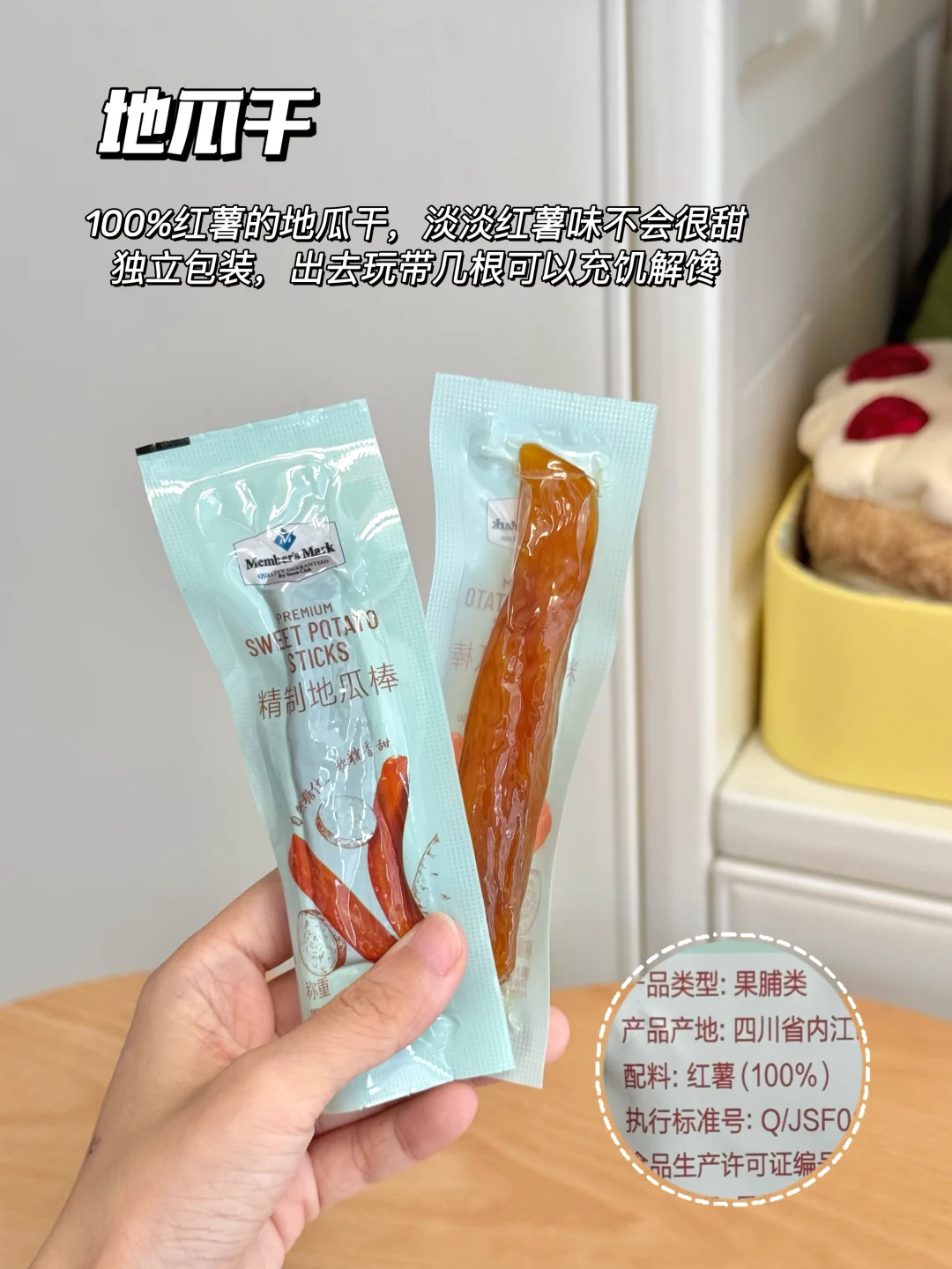 100%红薯的地瓜干,淡淡的红薯味,不会很甜,娃很喜欢!出去玩带两根可以充饥解馋~