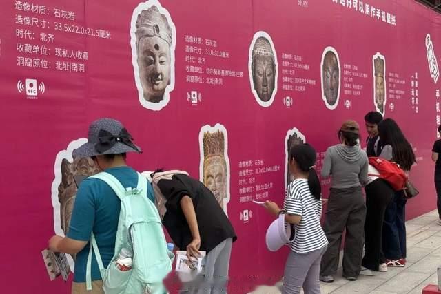 在“数字响堂”展区,以佛教文化为核心的数字内容与科技手段深度融合,吸引了众多游客驻足拍照。游客们在此通过北齐佛造像数字复原、石洞开凿互动演示等项目,详细了解佛教艺术的发展脉络与响堂石窟的独特价值。特别是在巨幅光影佛像前,游客纷纷停下脚步,记录下这庄重而震撼的瞬间。广东游客余雨菲被“三大石窟”直播吸引而来,她表示:“从广东到洛阳、安阳,再到峰峰,一路追寻石窟艺术,南响堂的精巧、北响堂的雄浑令人震撼,数字艺术让千年的佛教文化更加生动可感。”余雨菲在参观中领取了“通关文牒”,计划此次峰峰之行走遍各个景区逐一打卡盖章,将峰峰的山水人文与石窟艺术“一网打尽”。