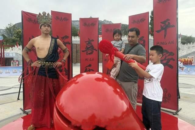 来到广场,只见工作人员身着怒目金刚、观音菩萨、童女等神话人物服装,与游客合影留念。景区提供免费拍照、免费打印服务,游客纷纷驻足打卡。随着“当当当”的锣声响起,身着仙姑服饰的工作人员热情招呼游客参与古诗接龙、猜拳等互动游戏,赢者可获得刮刮乐,现场笑声、掌声此起彼伏。来自安阳的李贝一家幸运抽中“响堂山酒店免费住宿一晚”奖项,“这让我们两天行程更加从容。没想到邯郸的旅游这么贴心周到,给我们留下了很好的印象,必须点赞!”