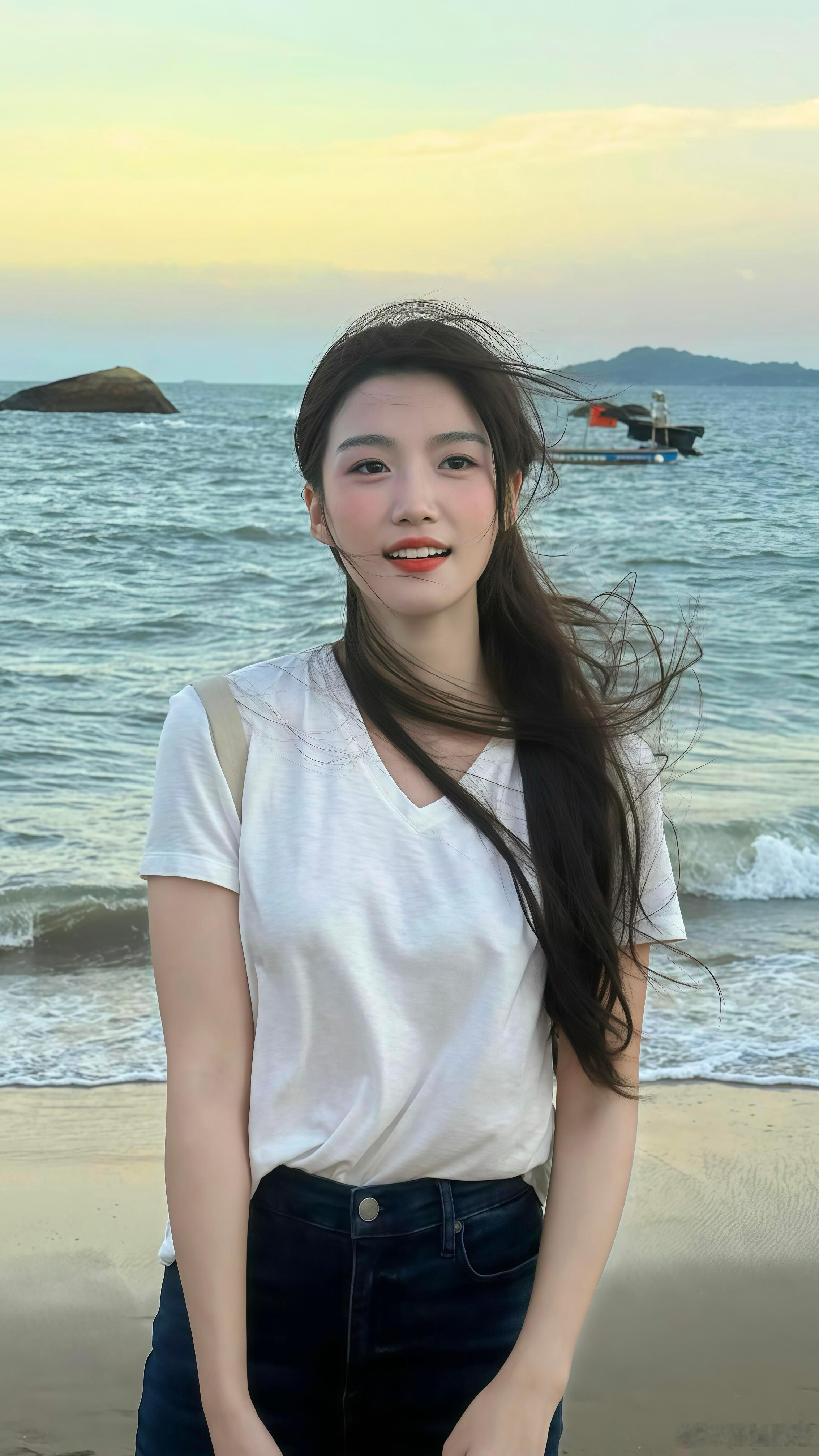 卢昱晓这组白T海边照超清纯~