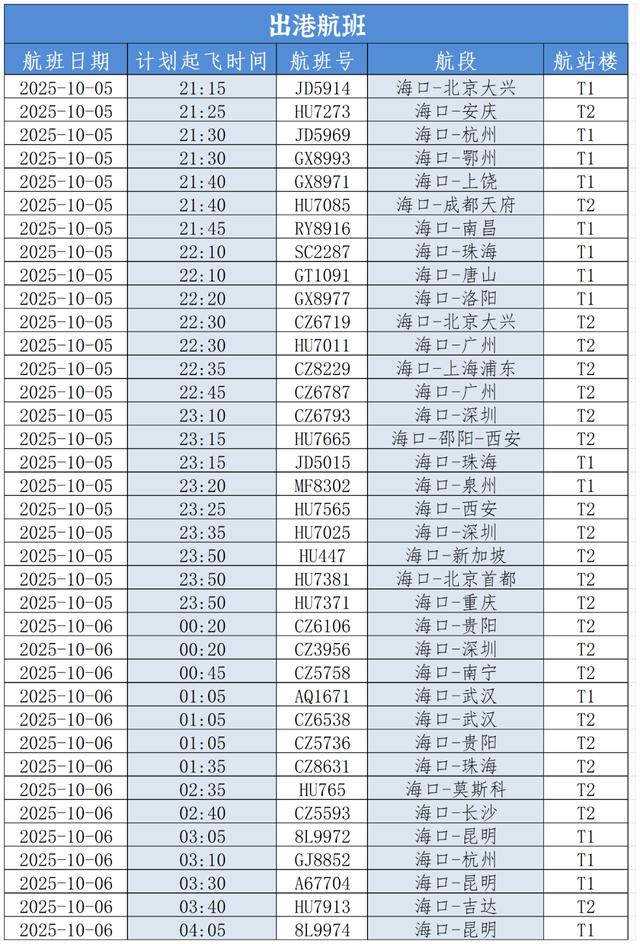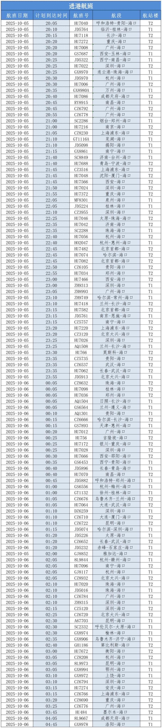 根据天气情况,海口美兰国际机场预计于10月5日20时起逐步恢复航班运行,当日预计执行航班153架次,其中出港37架次,进港116架次。