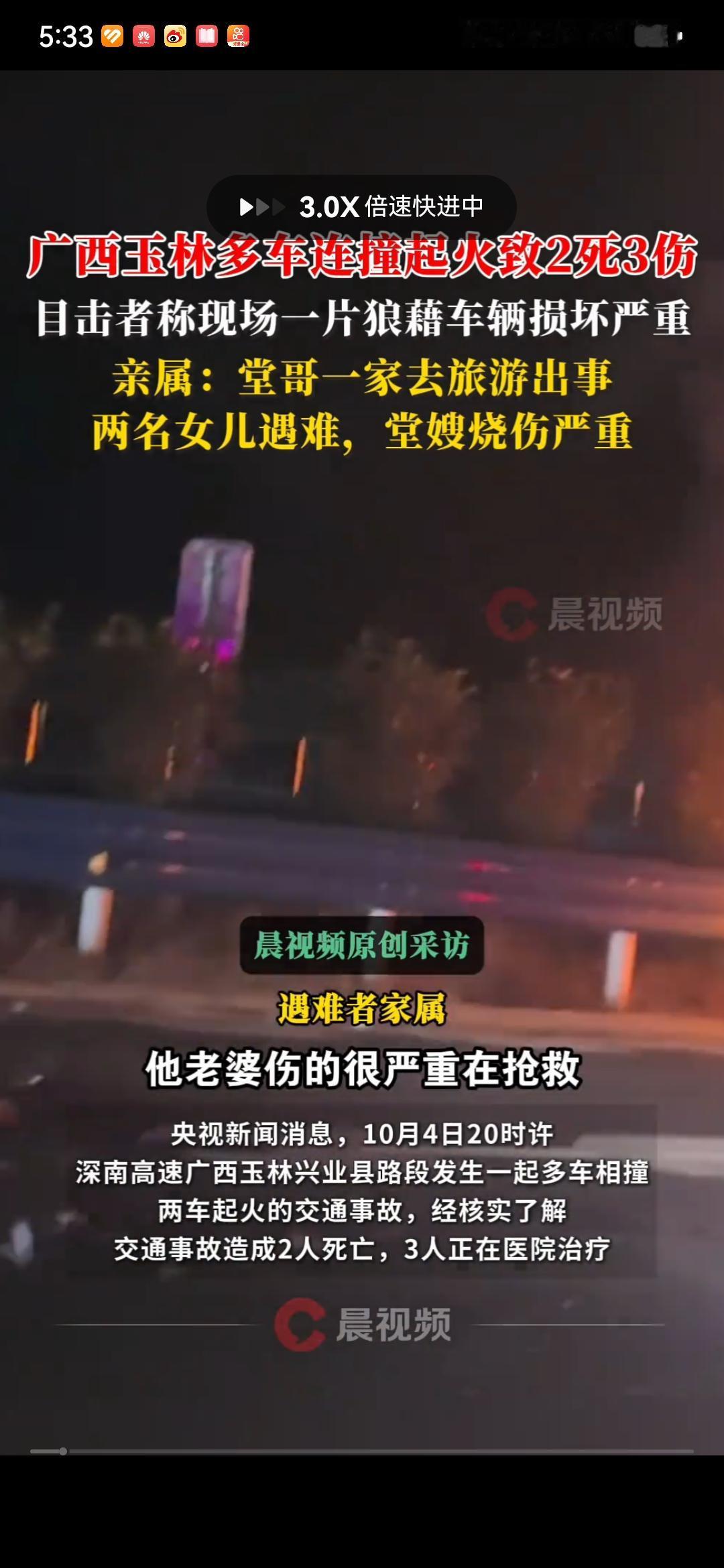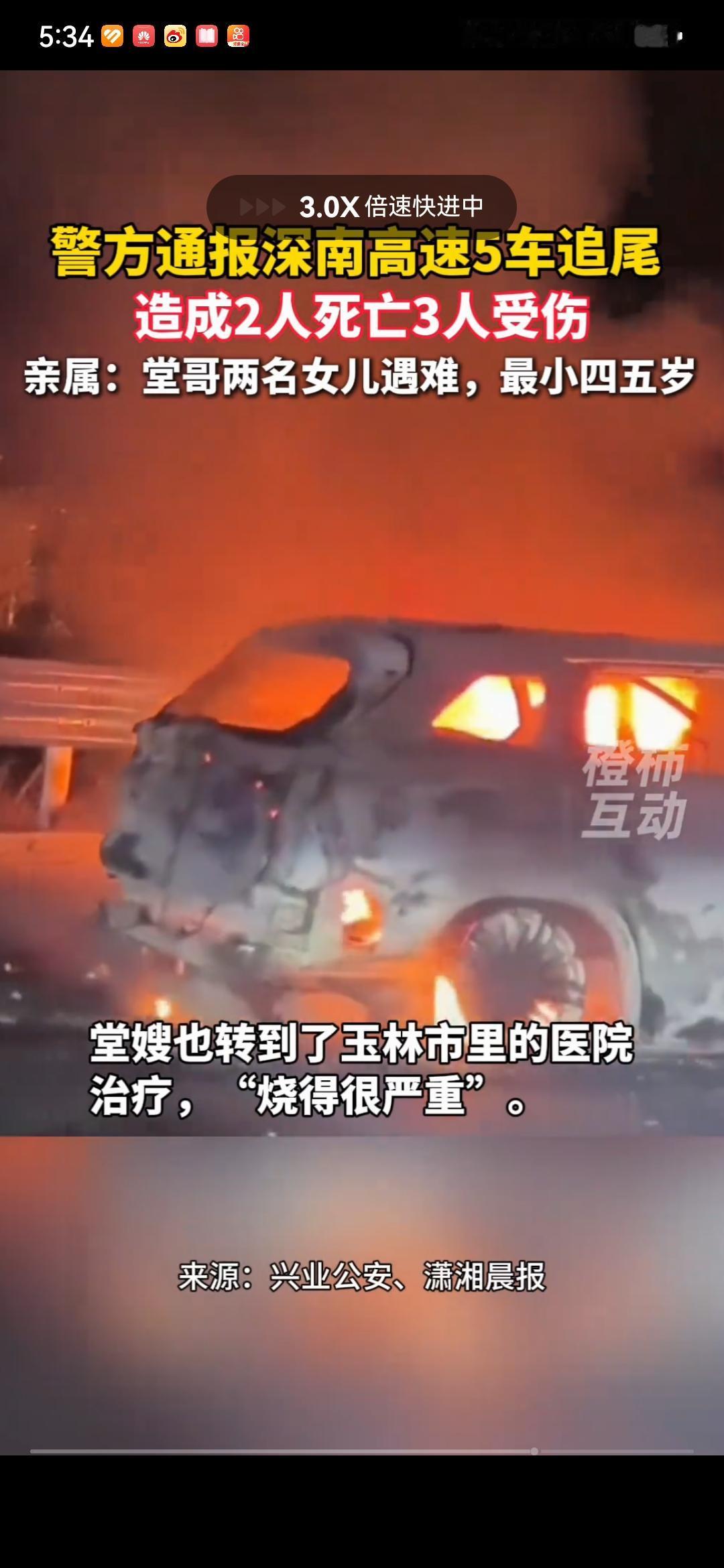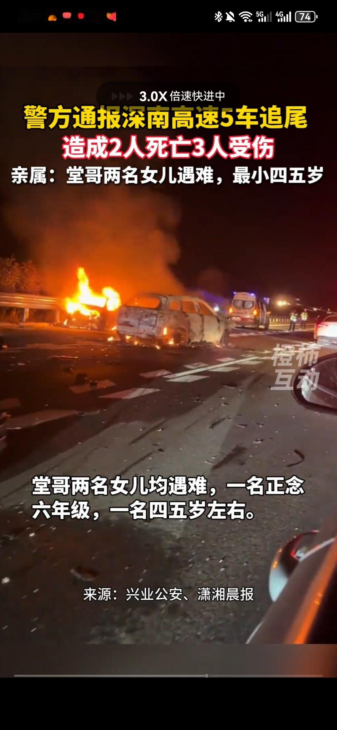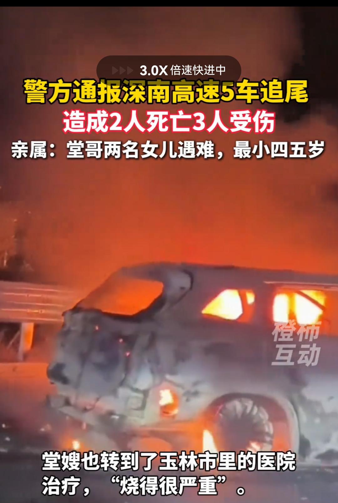 2死3伤!深南高速G0412广西广西玉林兴业县路段发生5车追尾连环相撞事故,亲属
