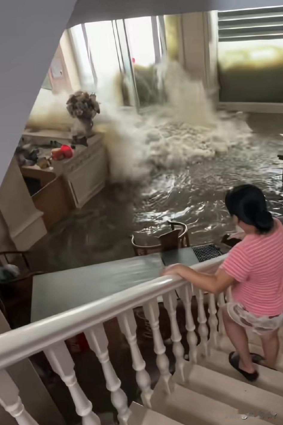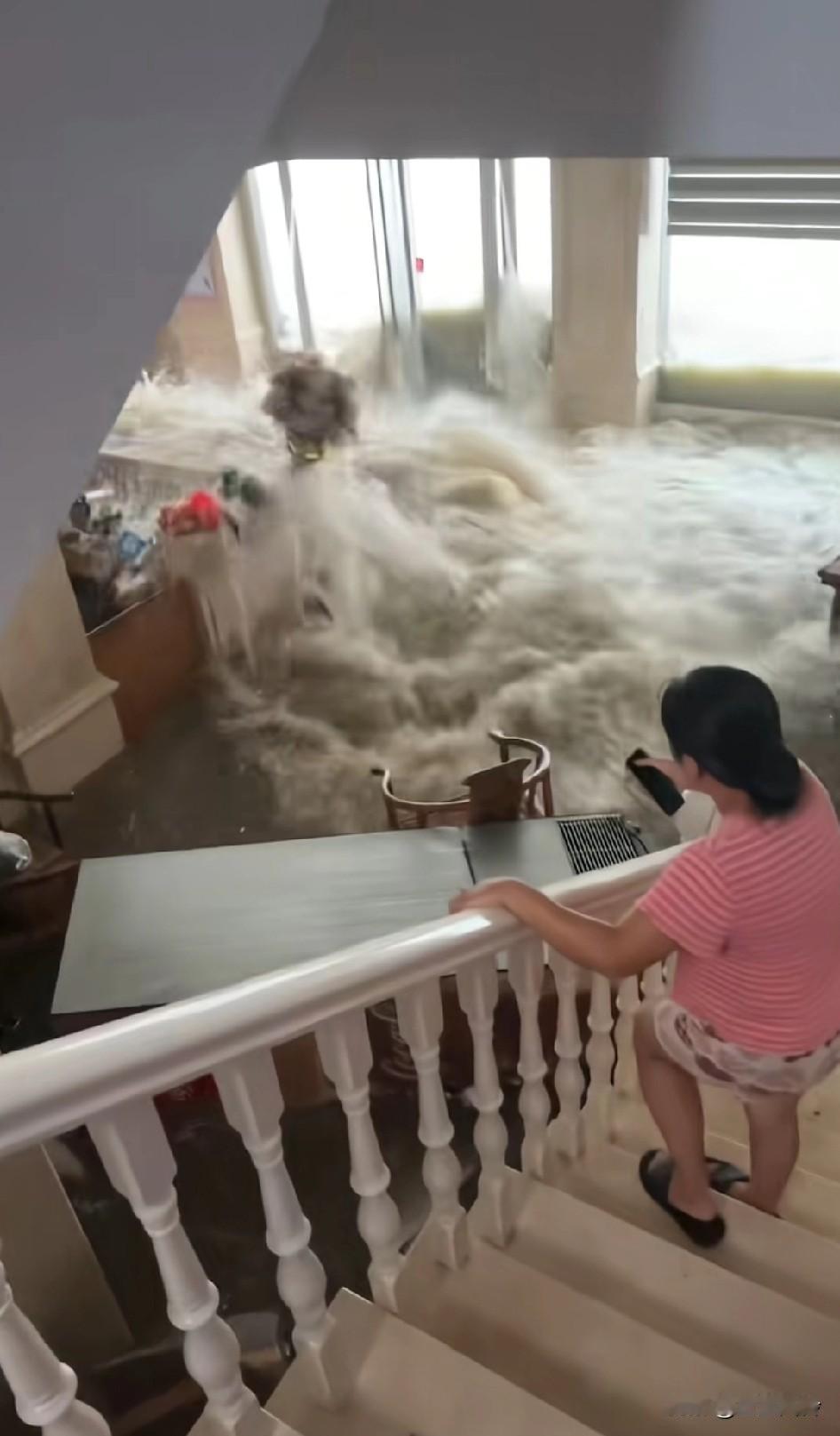 湛江遭遇超强台风麦德姆,洪水冲破玻璃门,冲进大厅瞬间,洗澡在家里就行 台风一来,广东广西就受罪了。广西横州现在风超级大,根本不用自己走路。高估了桦加沙,低估了麦德姆。中秋还有台风,实属少见,今年多一个月啦,等于九月15了。台风赶上大潮水,而且8月15是一年当中最大的潮水,包海水倒灌。这样的气候,就不能弄落地窗,至少1米高混凝土墙,门口处堵沙袋。地下室进水了,很多鱼跑进家里
