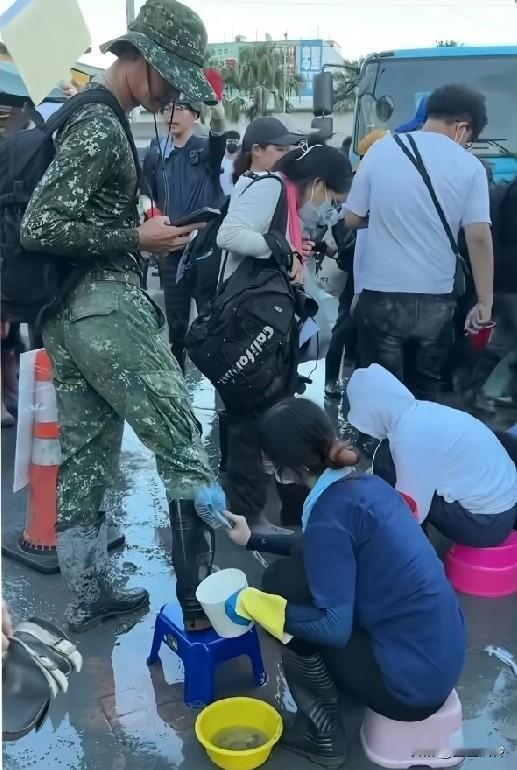 我们的抗洪战士脚泡到烂,台湾那边的军爷还要志愿者刷雨靴,两岸真的是不一样啊 老蒋的兵,在日本投降那年就完了,民国的兵,老蒋经手后就变了。国民党不是一直这样吗?输了几十年了还不知道自己怎么输的,湾湾的蛙蛙兵和儿戏一样,小孩子春游都比他们有秩序,不是所有军队都能叫人民子弟兵