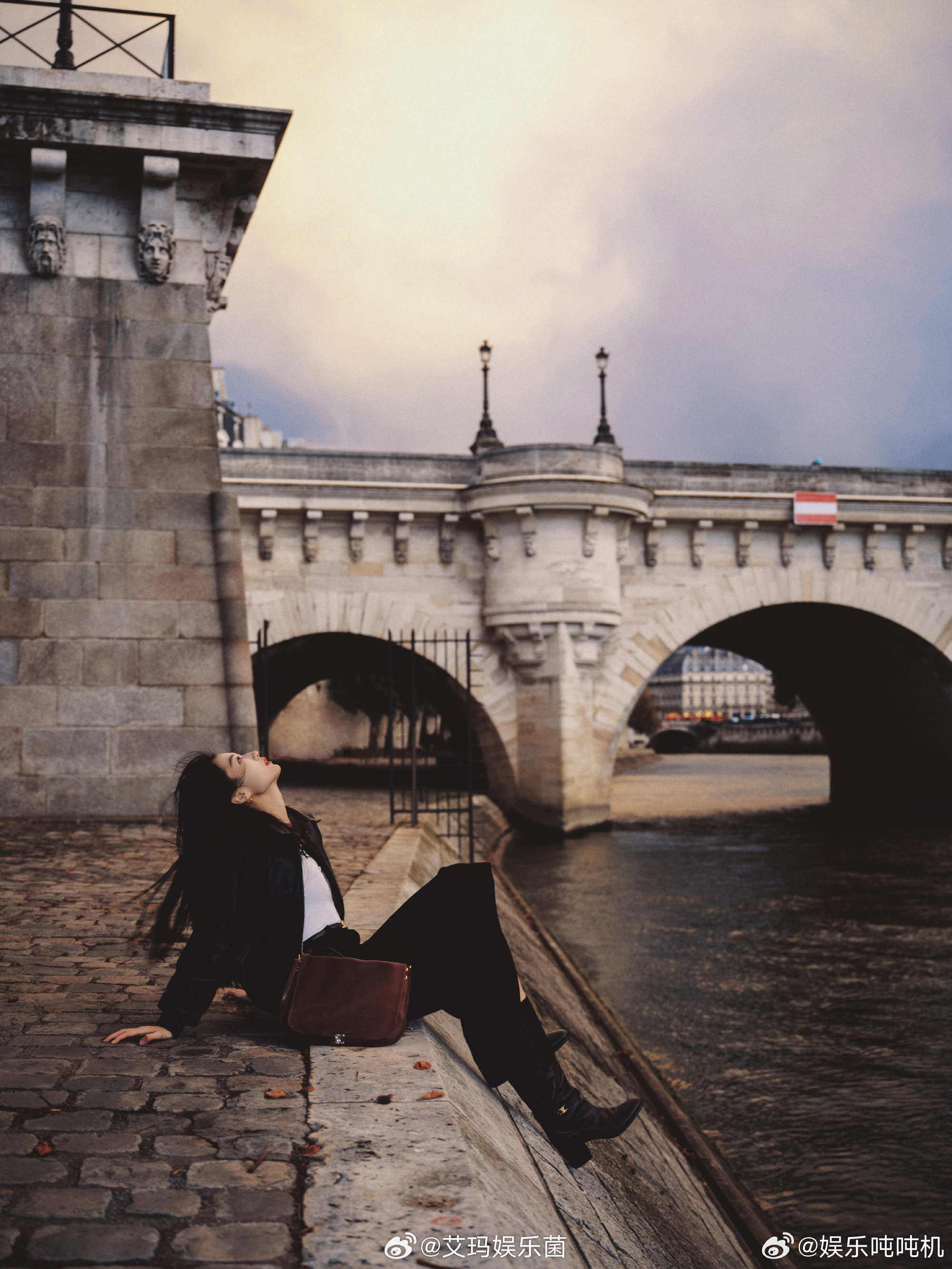 巴黎河畔的风也偏爱孙千 孙千站在巴黎河畔,夜色笼罩,风轻轻拂过她的发丝,黑皮衣在路灯下泛着光,红唇衬得肤色更加冷白,整个人像是从复古电影里走出来的女主角,举手投足都带着一种不经意的飒气。 ​​​
