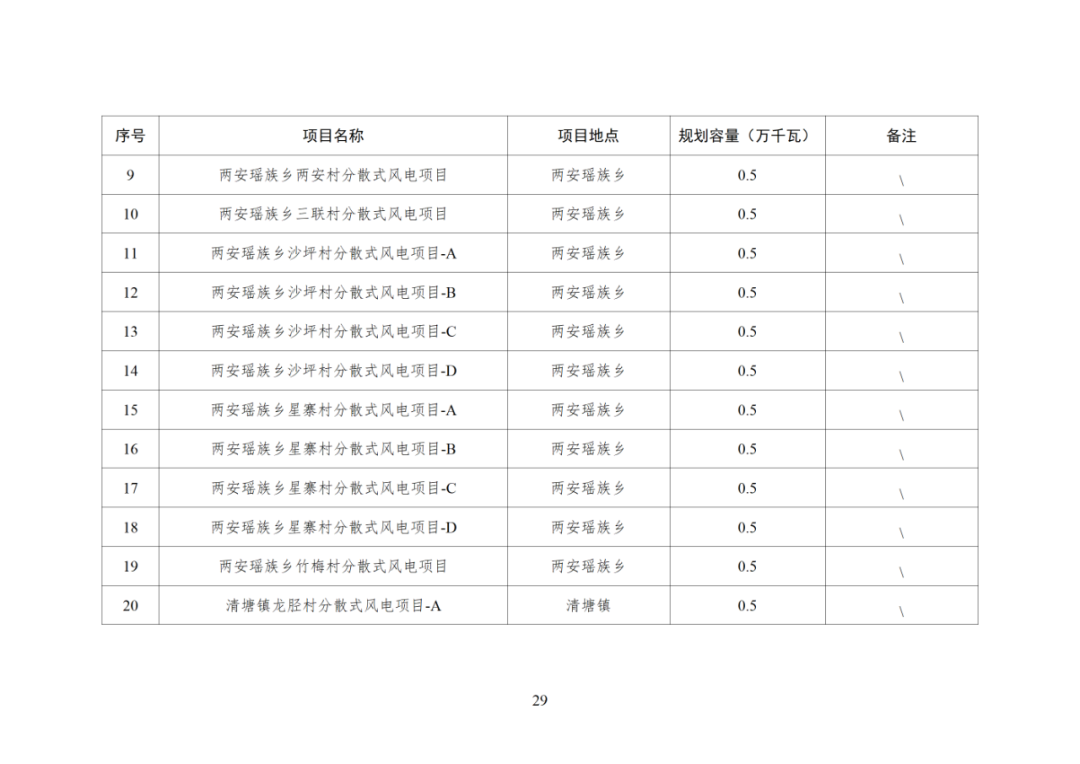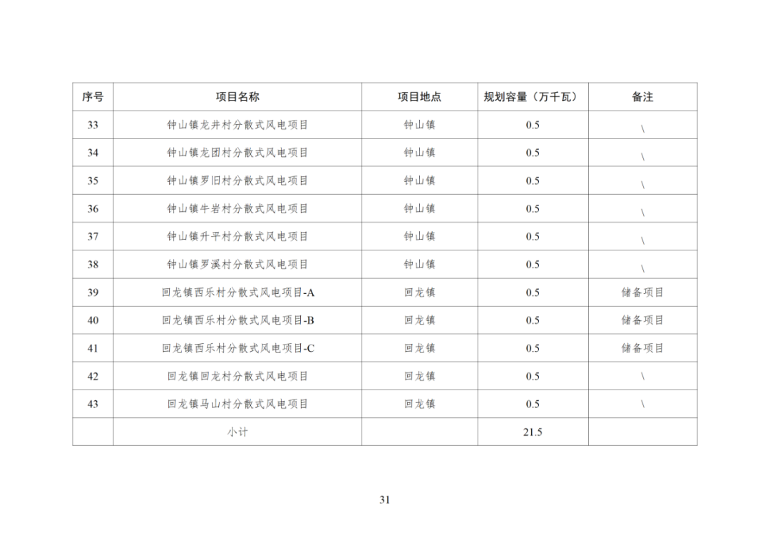 本次规划共新增161个第二类分散式风电项目,装机规模共计80.5万千瓦(单个项目按5兆瓦计),初估年上网电量约为15亿千瓦时。其中储备项目18个,装机规模共计9万千瓦(单个项目按5兆瓦计)。