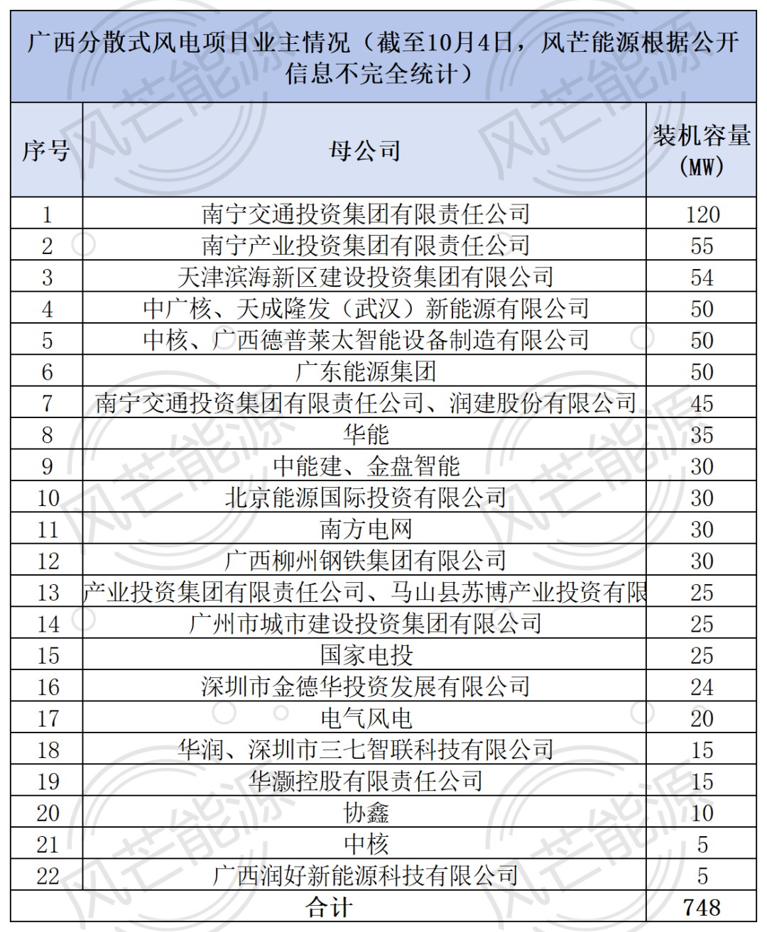 其中,已公示业主的风电(含县级公示申报风电业主)规模为748MW,项目分别位于南宁市、来宾市。