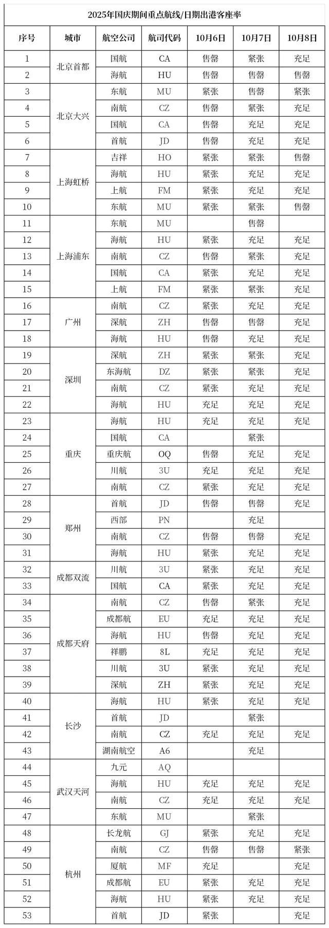 复航后的美兰机场将迎来2025年国庆中秋假期返程高峰,现整理热门城市10月6日-8日出港航班余票信息,其中10月6日出港北京、上海、广州余票较少,10月7日-8日出港余票均较为充足。