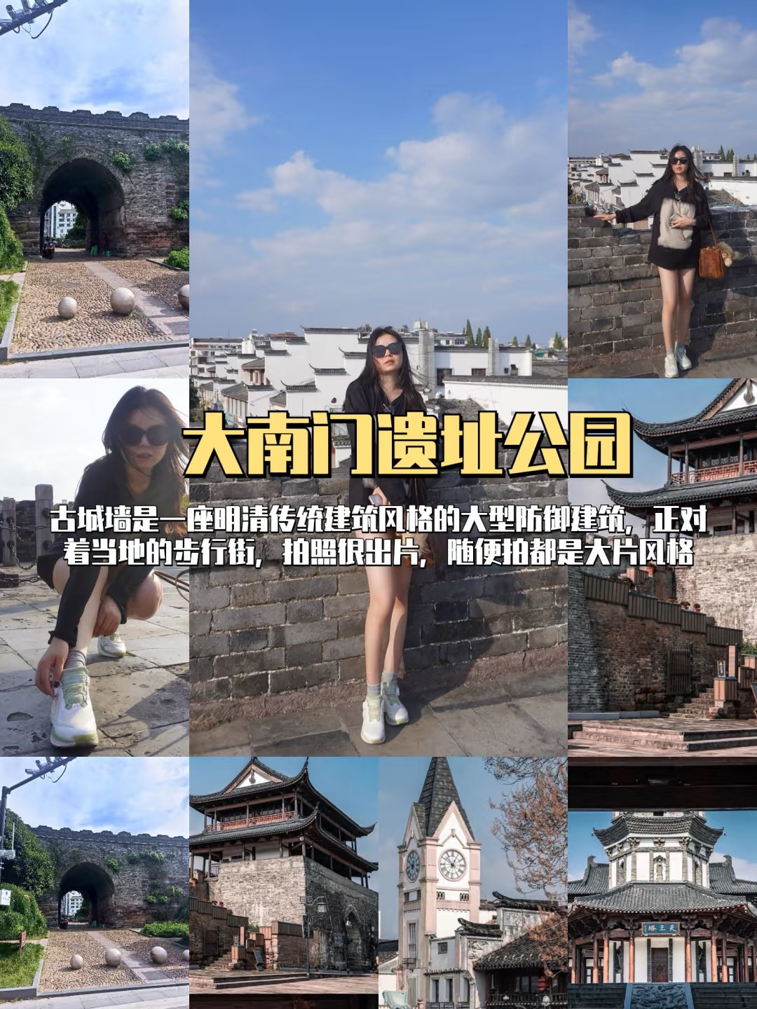 1大南门遗址公园,大南门牌坊和城墙都 hin 有历史痕迹,始建于唐朝,站在城墙上看可以俯瞰整个坊门街;
