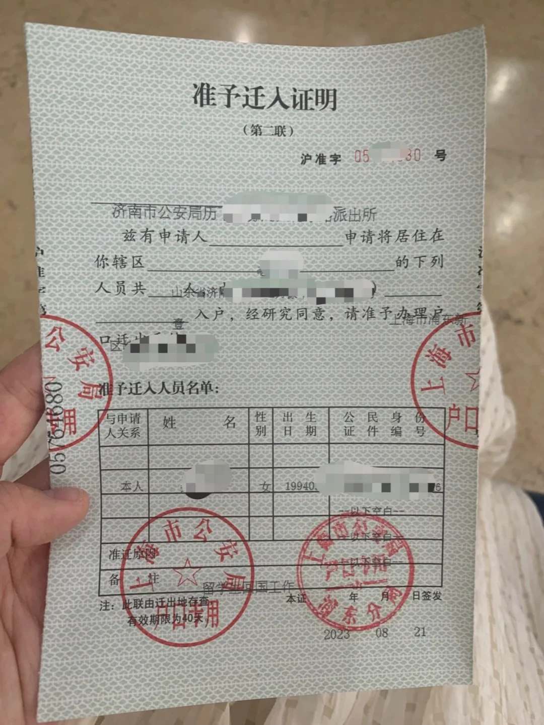 3. 办理完成后,将获得由原户籍地派出所出具的户口迁移证。