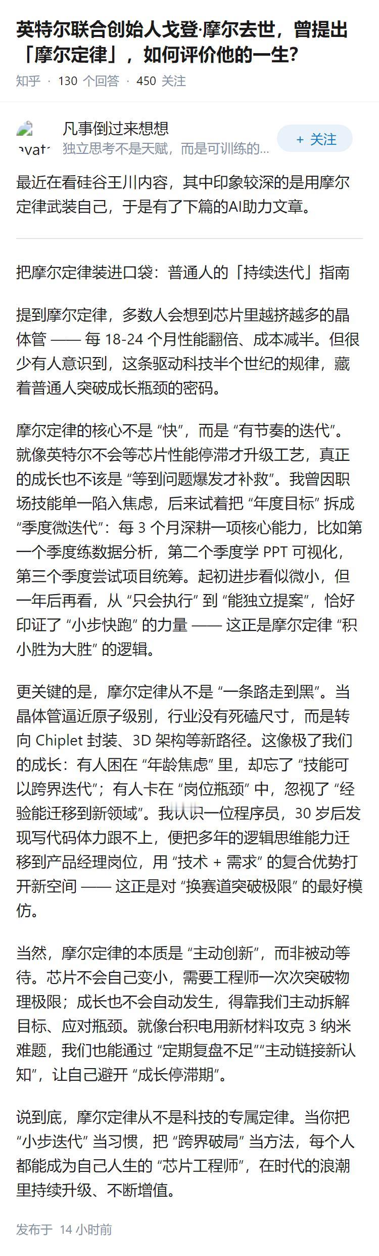 英特尔联合创始人戈登·摩尔去世,曾提出「摩尔定律」,如何评价他的一生?