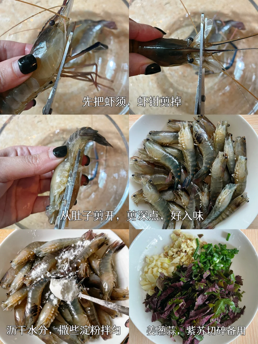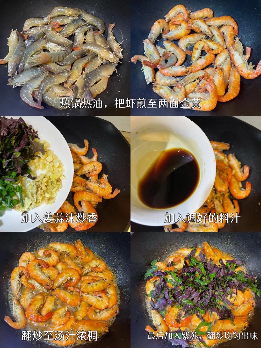 【食材】:罗氏虾 1斤,紫苏 1把,姜葱蒜