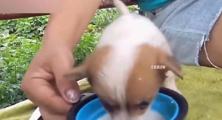 昨天去走亲戚,天下着小雨,去路边一家小超市买礼品,看到门口有一只小狗崽浑身湿透冻的瑟瑟发抖,就问超市老板为什么不照顾好自己狗狗?老板说,那不是我的狗,那是一只流浪狗,原来是跟着妈妈流浪的,几天前妈妈被车压死了,就剩下它一个了。出门的时候我忍不住又看了小狗崽一眼 ,就开车离开了。走了几十米后从倒车镜里发现,小狗崽正在跟着车子跑 ,我靠边停车,狗狗来到车旁,累的坐在那里气喘吁吁。我伸手去抚摸它,它一点也不害怕,我找来毛巾给它擦干了身体,倒了一盒牛奶给它吃,大概是很久没有吃到这么美味的食物了,狗狗很快吃完了。我抱它上车带回了家,给它洗了澡,准备了一个舒适的小窝,收养了它。就因为多看了它几眼,它就认定了我,或许这就是缘分吧!