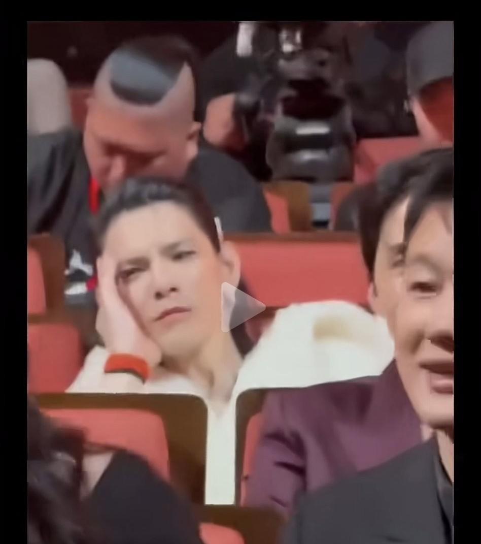 向佐成功抢镜!原视频是这样的,佟大为和刘亦菲兄妹俩摆pose合照,后面背景很复杂,很多演员和明星。特别是隔了两排座位的向佐,穿着白色大右手托着脸,眯着眼睛斜靠在座位上,香妃翩翩的样子,成功吸引了大家的注意力。相片出来后,背景清空了!只剩下向妃一只手和三分之一脸。