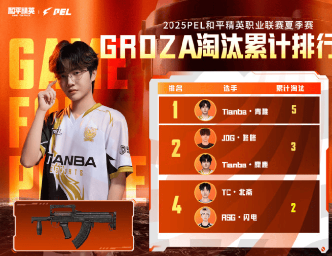 Tianba青稚凭借5个淘汰,位居GROZA淘汰榜榜首