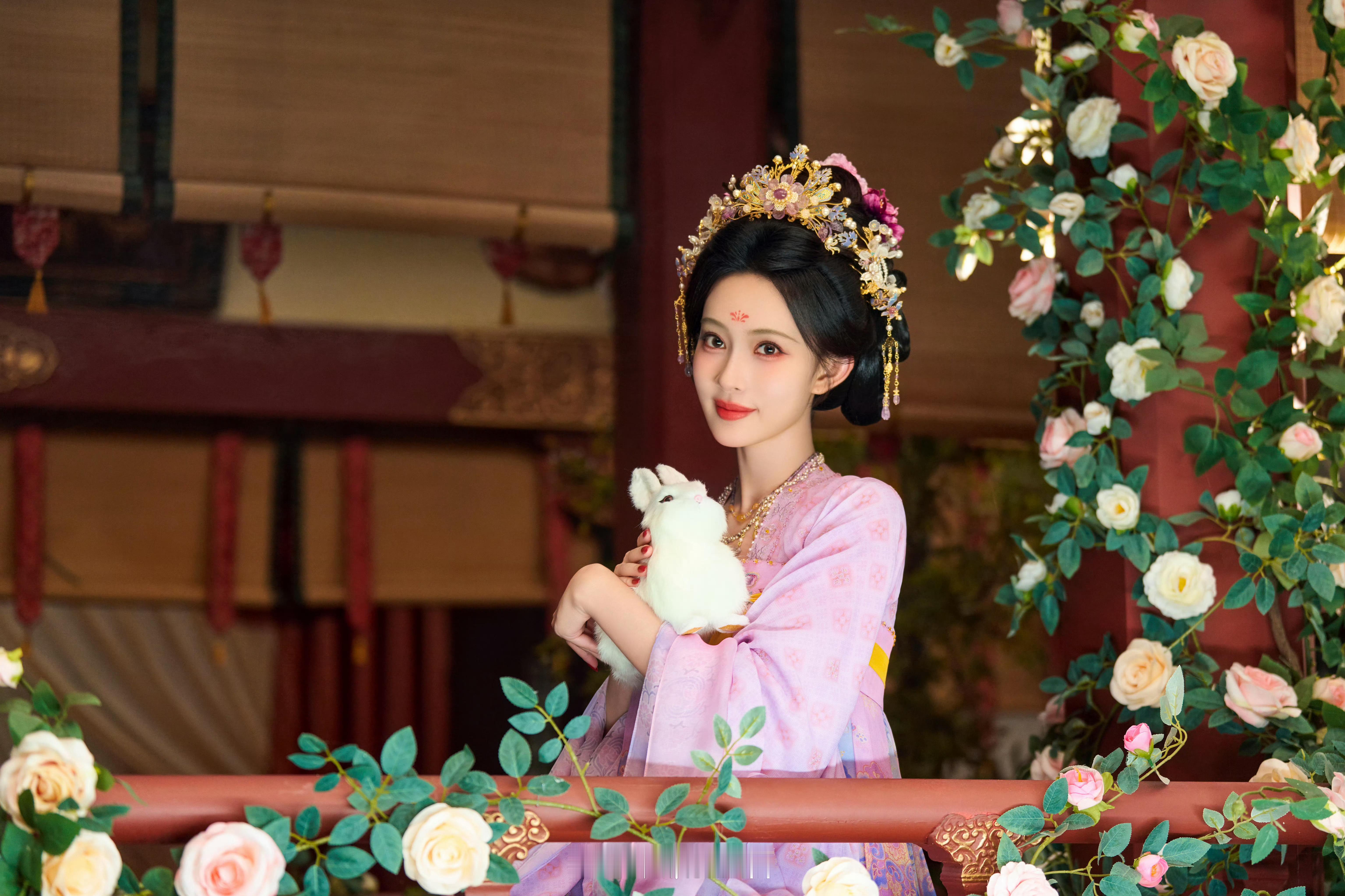 嫦娥捧玉兔赛道新添一位貌美女明星孟子义,中秋营业应景又用心