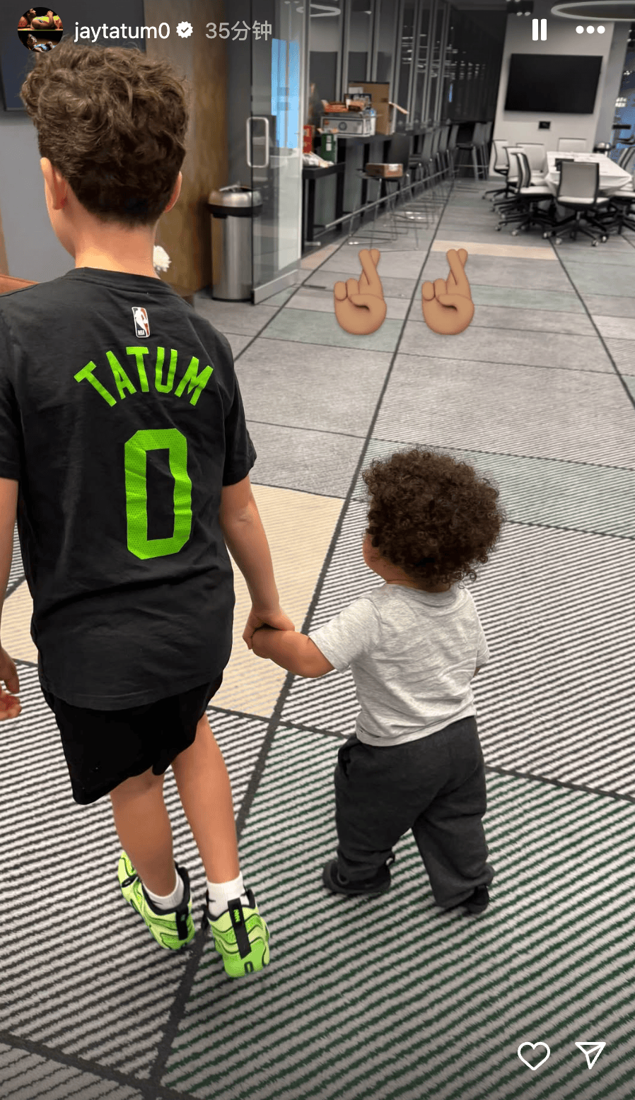 虎扑10月06日讯凯尔特人前锋杰森-塔图姆今日更新个人Instagram动态,他晒出了自己两个儿子牵手的照片。