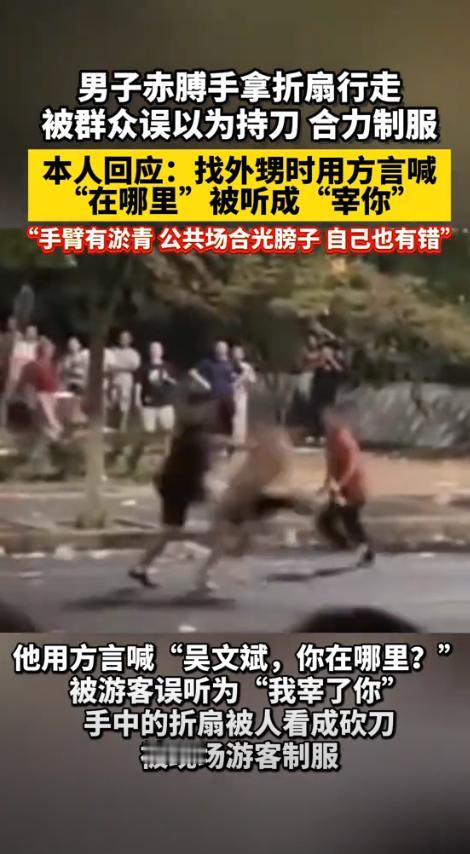 这下误会大了!江西南昌,一名男子觉得有点热,便脱掉上衣,一边喊自己的外甥,手中还拿着一把折扇。旁人误以为他拿的是刀,有人当即挺身而出,上前将男子踹倒;随后民警赶到,将男子带回派出所调查,事后才发现是一场误会。 据杭州网10月5日报道,国庆节那天,江西南昌的烟花表演吸引了成千上万的人,人山人海,热闹非凡。 就在这片欢乐的海洋里,发生了一件让所有人都没想到的事,一名男子在人群中光着膀子,手里似乎还拿着什么“家伙”,大声地喊着什么,这场景,让周围的人心一下子提到了嗓子眼。 当时现场人挤人,天气也特别闷热,这名男子姓李,跟着家人一起来看烟花,因为实在太热了,他就索性把上衣脱了,光着膀子凉快凉快。 他手里还拿了把新买的折扇,就是那种带有水墨画的扇子,时不时扇两下风,李先生平时热爱健身,身材练得比较壮实,身上还有些纹身。 这一脱上衣,在人群中就显得格外扎眼,烟花表演一结束,人群开始慢慢散去,就在这时,李先生回头一看,发现自己的小外甥不见了。 这下可把他急坏了,孩子丢了可不是小事,他想都没想,就一边在人群里挤着往前走,一边大声地喊着外甥的名字。 因为心里着急,他的表情可能有点严肃,喊声也比较大,加上他光着膀子、一身肌肉和纹身的形象,这副样子在旁人看来,就有点不一样了。 周围的人本来还在开心地讨论着烟花,突然看到这么一个“壮汉”光着膀子,手里好像还握着个东西,行色匆匆地在人群里穿梭,嘴里还大喊大叫,不少人心里都开始犯嘀咕。 晚上光线不好,人又多,大家离得远,根本看不清他手里拿的到底是什么,有人就觉得,那东西在灯光下一晃一晃的,看起来像一把刀,这个念头一出来,恐慌就像水波一样迅速散开。 “他手里有刀!”不知道是谁先小声说了一句,很快,越来越多的人开始注意到李先生,大家看他的眼神都变了,纷纷下意识地往后退,给他让出一条“通道”。 有人悄悄拿出了手机,准备报警,李先生当时满心都是找外甥的焦急,根本没注意到周围气氛的变化,他只觉得奇怪,怎么大家都在躲着他走。 就在他一头雾水的时候,突然,从斜后方冲出来一个男子,动作非常迅速,那名男子一把冲上来,先是劈手夺下了李先生手里的东西,李先生还没反应过来,就感觉腰部被一股巨大的力量猛地一踹,整个人“砰”的一声就摔倒在地。 这一下摔得结结实实,李先生的屁股着地,疼得他龇牙咧嘴,脑子一片空白,他完全懵了,挣扎着想坐起来,还没等他搞清楚状况,几个警察就迅速围了上来,将他按在地上控制住了。 周围的路人也都围了过来,指指点点,“我干啥了?我找我外甥呢!”李先生躺在地上,既委屈又愤怒地喊道。 警察把他从地上拉起来,带回了派出所,直到这时,大家才看清楚,那把引发了巨大恐慌的“刀”,其实就是一把普普通通的折扇,而那个被当成“持刀歹徒”的李先生,也只是一个急着找孩子的普通市民。 事后,李先生在社交媒体上发了视频,一脸无奈地拿着那把折扇解释了事情的经过,他说自己到现在都有点懵,想不通怎么看个烟花就进了派出所,还被人踹了一脚。 “我屁股现在还疼呢,我是一个蛮好讲话的人,就这么被踹了,到现在都搞不懂为啥。” 很多网友看了之后,都觉得这事太离奇了,有网友评论说:“大哥这身材,这纹身,晚上光着膀子再拿个东西,确实容易让人误会啊!主要是那份着急找人的气势,太有压迫感了。” 还有人说:“那个踹人的大哥也是个热心肠,虽然冲动了点,但出发点是好的,看到‘危险’就挺身而出,这份勇气值得点赞,就是下次动手前,最好还是先确认一下情况。” 确实,这件事里,踹人的路人或许有些鲁莽,但他见义勇为的初心是值得肯定的,在当时那种紧张、混乱的环境下,他选择了第一时间站出来制止“危险”,保护大家的安全。 李先生,也确实是无辜的,他只是一个关心家人的普通人,却因为外形和当时急切的行为,被卷入了一场哭笑不得的风波。 这件事也提醒了我们所有人,在公共场合,一个人的外表和行为,确实很容易被别人解读,有时候,一个无心的举动,在特定的环境下就可能引发意想不到的连锁反应。 我们不能要求别人通过我们粗犷的外表,去看到我们温柔的内心,同样,当我们看到疑似危险的情况时,在保证自身安全的前提下,多观察、多确认,或许能避免很多不必要的误会和伤害。 信源:杭州网2025-10-5——南昌“折扇哥”回应持扇行走被群众制服:找外甥时用方言喊“在哪里”被听成“宰你”,公共场合光膀子,自己也有错