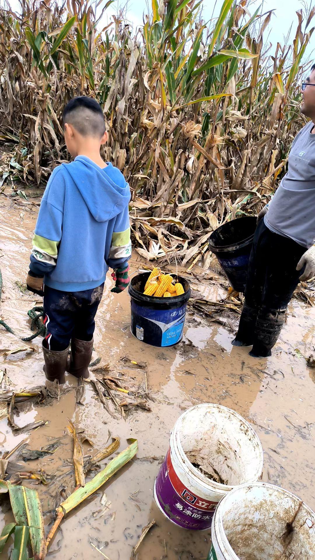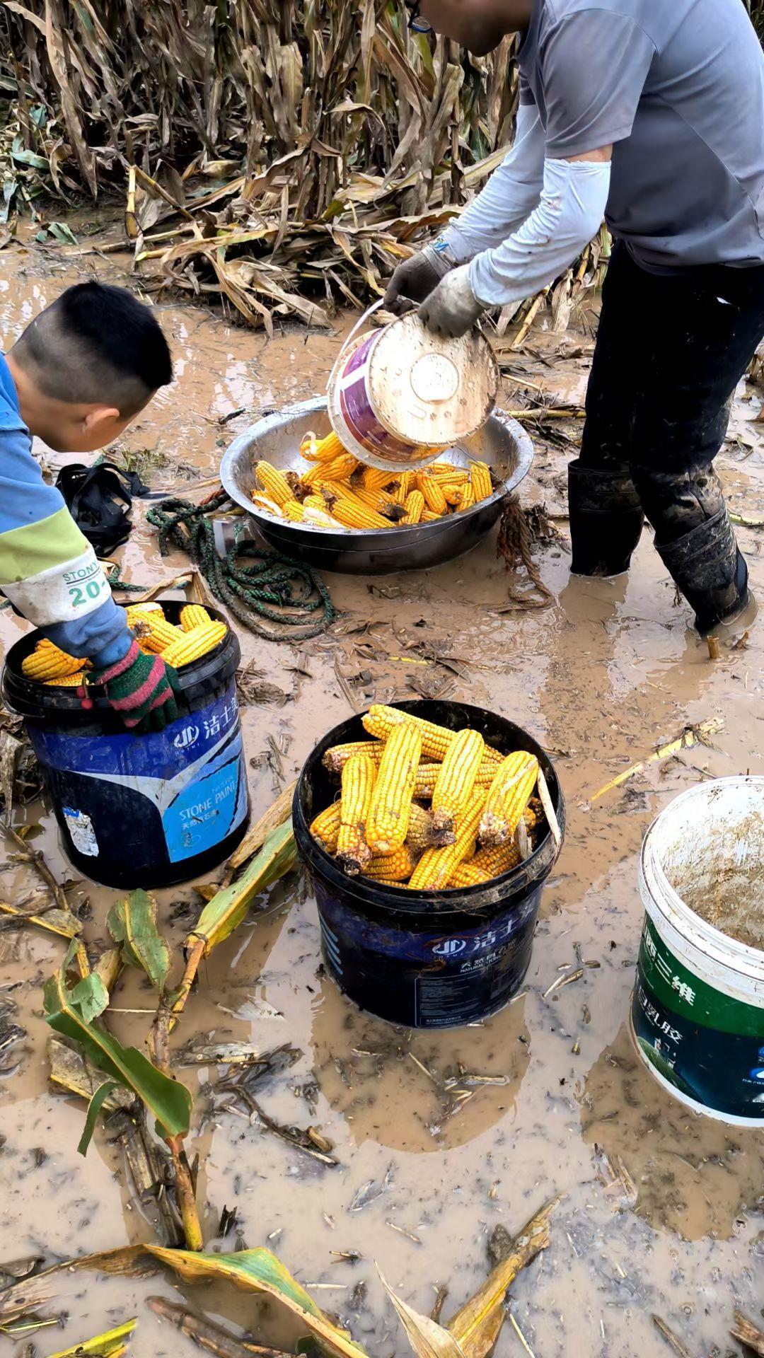 这就是丰收节啊。河南豫东的玉米正在收获,老天爷却是一直下雨,地里存水,收割机不能进地,只能如此辛苦啦。粮食价钱还不高,农村容易不?!麦收后就是不下雨,玉米都是抗旱浇地种的。 谁知盘中餐,粒粒皆辛苦。