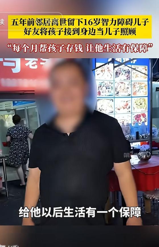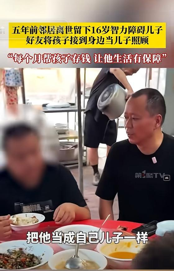 “重情重义!”湖南,一男子的52岁临终,将16岁智力障碍儿子托付给他,男子承诺“只要我有一口饭吃,就不会让他饿着!”5年过去了,那个只有四五岁儿童心智的男孩已经21岁了,学会了生活自理,男子接下来的话让人潸然泪下! 10月3日,据第一眼新闻报道,男子临终前将智力障碍的儿子托付给了邻居照顾,5年过去,男孩身上发生了不小变化。 2020年,李先生的邻居老杨去世了,临终前,他把李先生叫到床前,让他帮忙照顾16岁的儿子。 男孩的智力只有五六岁孩子的水平,需要人照顾,他实在放心不下。 李先生没有推脱,向他承诺“有我一口吃的,也会有他一口吃的!”老杨这才放心闭了眼。 从那天起,李先生把男孩当亲生儿子带在身边,因为担心他长大后不会照顾自己,李先生从头开始,教他一些生活的常识。 还让他在自家的饭店里,学会了煮面、给自己做饭,这样即使某天李先生不在他身边,男孩也会照顾好自己。 更令人惊喜的是,5年后,原本懵懵懂懂的他还学会了待人接物,店里有顾客时还会上前帮忙。 李先生还为男孩考虑到了未来,每月都会帮孩子存一笔钱,加上男孩每月的低保,让他生活有保障,李先生像真正的父亲一样,想到了方方面面。 李先生对他的帮扶,没有停留在“给他一口吃的”上,他做到了比承诺更伟大的事。 不仅让男孩走进普通人的生活,还让他学了照顾自己的本领,甚至能在饭店里当帮厨的服务员,这对男孩来说,是最好的结果。 男孩已经学会跟人打交道,这些进步,是以前想都不敢想的。 他的智力存在问题,教会他这些并不容易,杨先生愣是一步步给他了尊严,这也是对特殊群体最有效的帮助。 男孩获得了一定独立生活的能力,有必备的生活技能,即使未来李先生不在了,他也能靠自己生活。 还有李先生为他存款,让他未来生活有保障,这更是一个“父亲”对“儿子”的无尽牵挂。 虽然他们之间没有血缘关系,但李先生和老杨多年的感情,早处成了比亲兄弟还深厚的情谊。 李先生没有做什么惊天动地的事,而是用5年的时间,履行自己的承诺。 这只是他付出的第一个5年,未来还会有更长的时间跟这个孩子相伴。 他所给的温暖,不是什么“天降奇迹”,而是任何承诺都无法比拟的责任。 愿我们都能成为“缝补世界”的人! (来源:第1眼新闻 2025年10月3日 重情重义!五年前邻居离世留下16岁智力障碍儿子无人照顾,好友将孩子接到身边当儿子照顾,教会孩子生活自理)