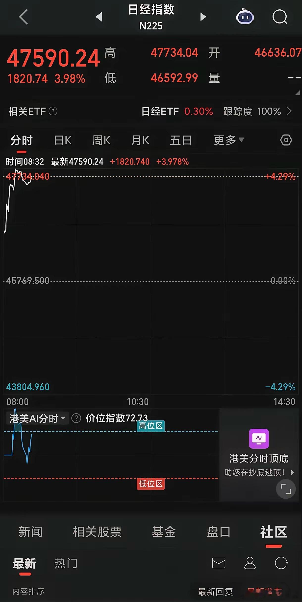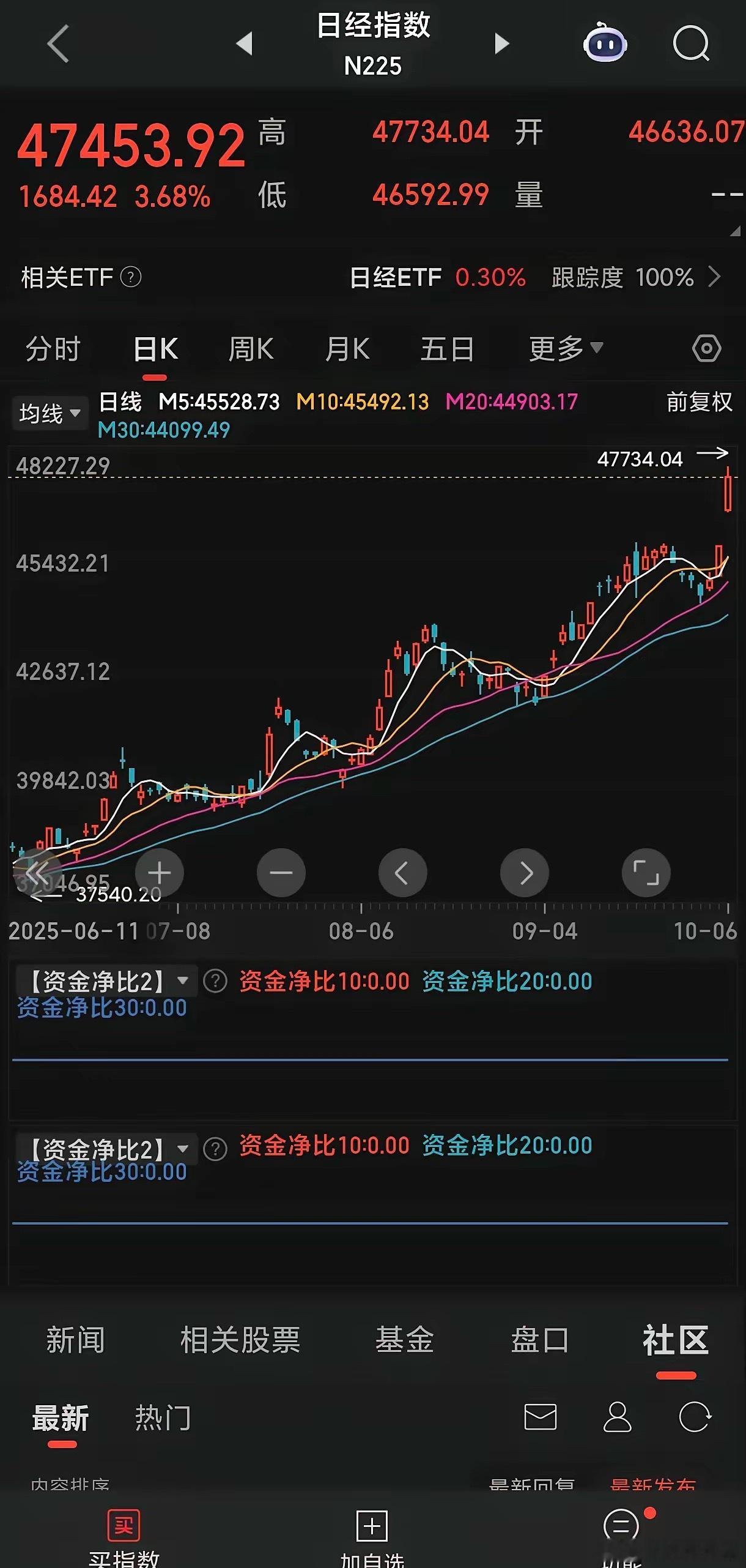 什么情况?亚太股市涨疯了,日经指数开盘大涨近4%,最高点47734.04,再次突破历史新高。国庆,中秋放假期间日经指数累计涨幅已经高达6%,A股节后开盘要求不高,能有日经指数一半3%的涨幅就可以了😌