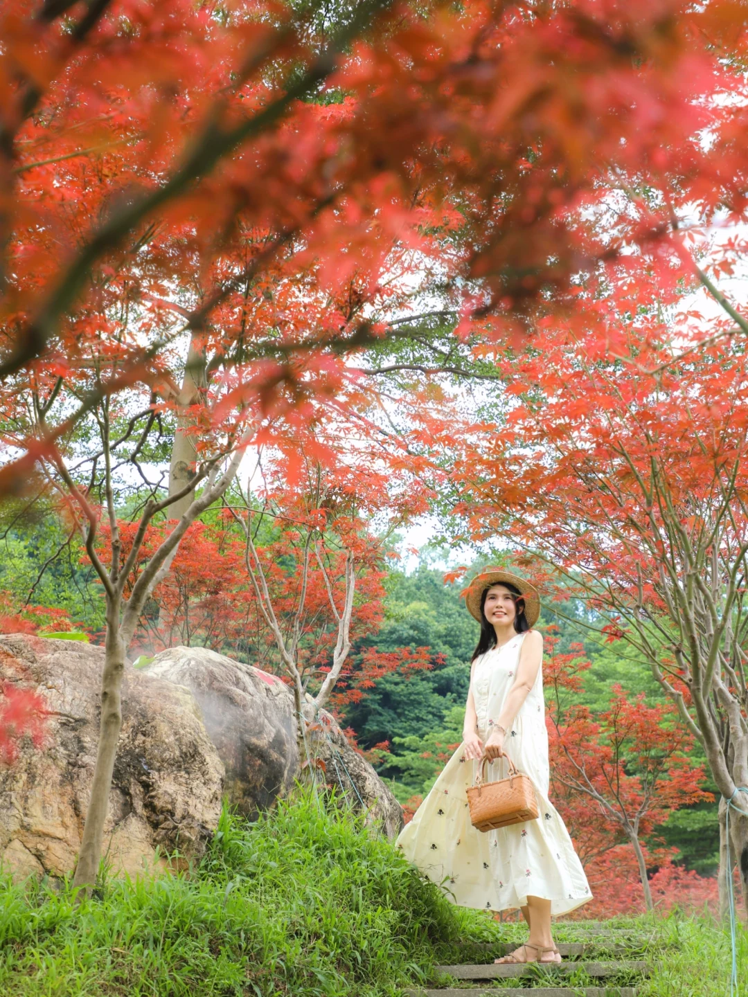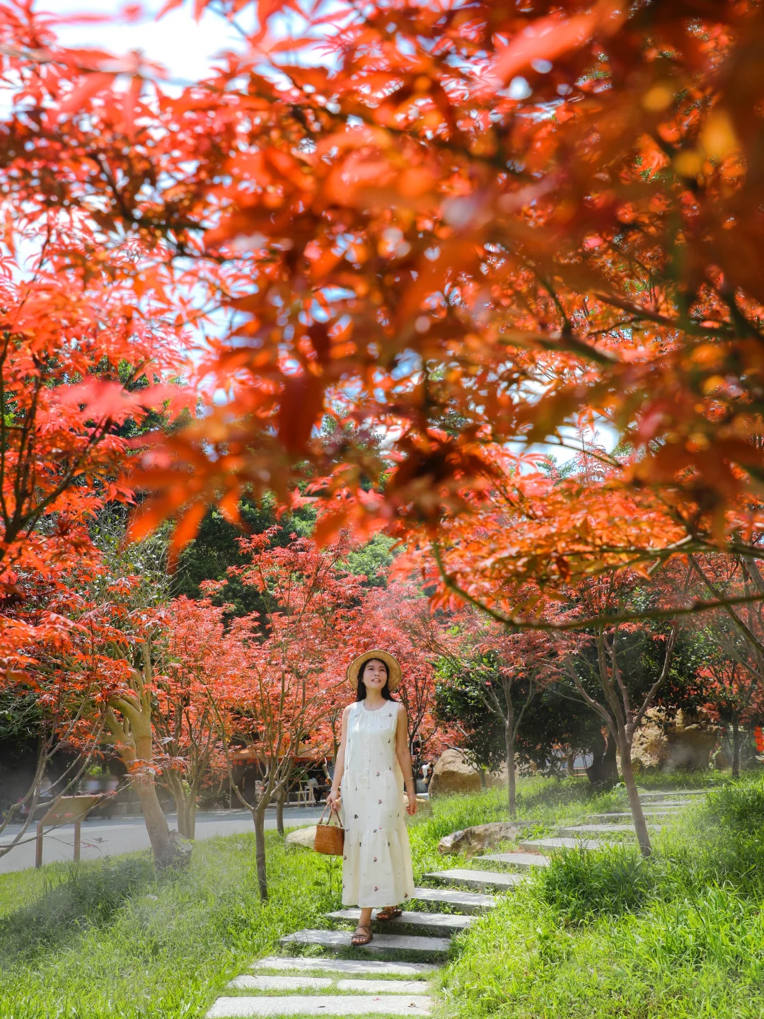 1️⃣枫树位于帽峰山红枫林,是鸡爪槭,相对矮小,高度适中很适合拍人像。