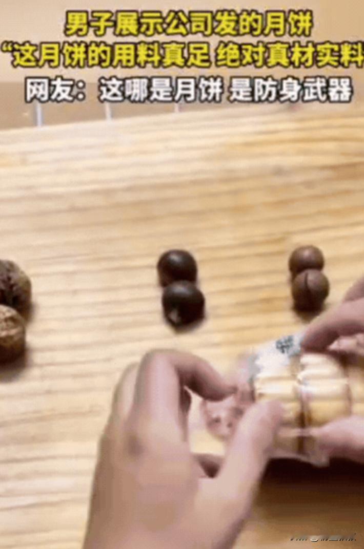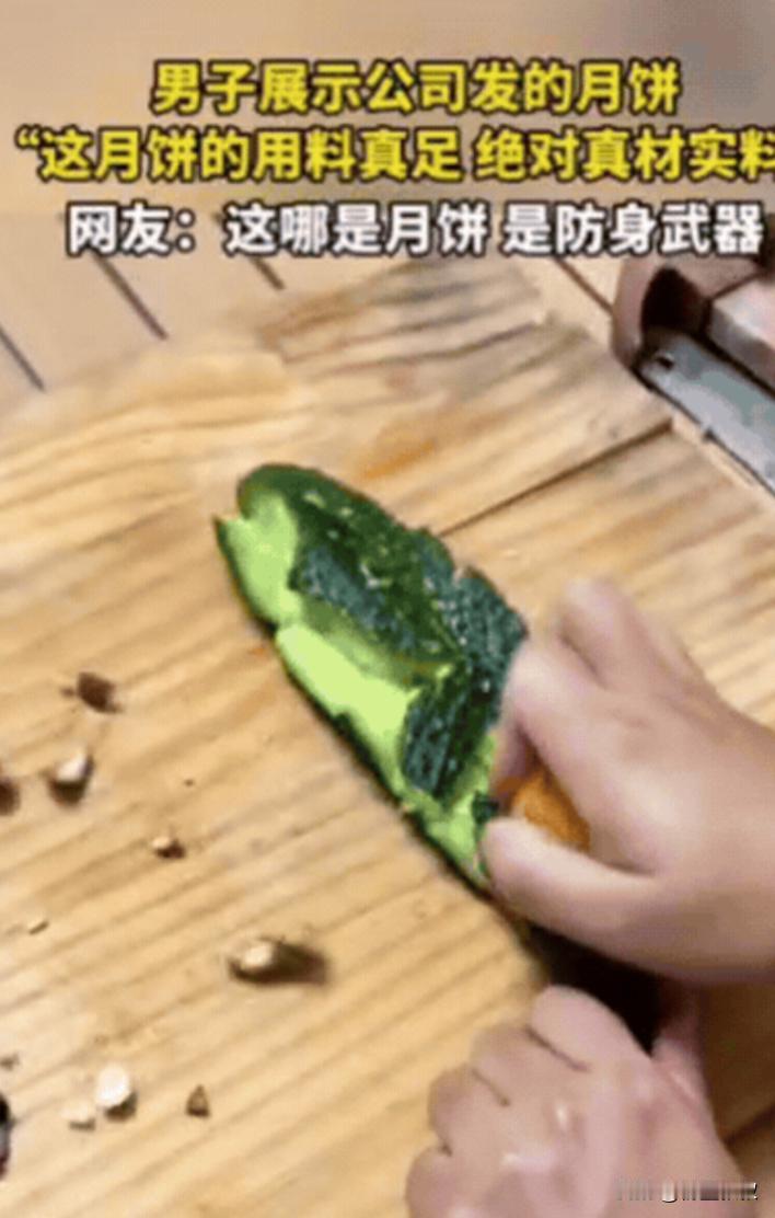 “解释不清了!”广东一男子展示公司发的月饼,竟然一口气拍碎了核桃、坚果、黄瓜,最后,男子还掏出锤子和菜刀,也没有把月饼敲碎,就这个硬度,要是用牙使劲咬一口,估计牙齿都得蹦碎掉,这月饼的用料真足,绝对真材实料,网友:这哪是月饼,是防身武器! 国庆前后不就到了公司发月饼的时候嘛,咱身边人收到的月饼不是莲蓉蛋黄就是流心奶黄,软乎乎的,拆开包装就能直接咬着吃,顶多是有些馅料扎实点,从没见过啥特别的。 可广东有个大哥,最近晒他们公司发的月饼,直接给网友整懵了,评论区里全在刷 “这哪是月饼啊,解释不清了!”,看完他那操作,我都忍不住跟着笑,这月饼也太 “硬核” 了。 大哥一开始拿到月饼的时候,也没觉得多稀奇,就是觉得比平时吃的月饼沉不少,捏着硬邦邦的,不像别的月饼一捏能有点软劲儿。 那天他闲着没事,桌上正好摆着盘没剥的核桃,突发奇想:“这月饼这么硬,说不定能敲开核桃?” 说着就拿起月饼,用月饼的底面对着核桃 “啪” 地拍了下去,没成想就这么一下,核桃壳 “咔嚓” 一声裂成了两半,果仁都蹦出来掉在桌上,大哥自己都愣了一下,估计也没料到这么管用。 他还不信邪,觉得可能是那核桃壳本身就薄,又随手抓了颗夏威夷果,这玩意儿壳可比核桃硬多了,平时得用专门的开果器才能撬开。 结果大哥还是拿着月饼,轻轻往下一按,“嘭” 的一声,夏威夷果壳也碎了,果仁稳稳落在手里,这时候他已经觉得这月饼不一般了,眼瞅着旁边有根刚洗好的黄瓜,顺手就把月饼凑过去,稍微用了点劲拍下去,黄瓜 “咔嚓” 断成两截,断面还挺整齐,连汁水都没溅出来多少。 到这儿大哥彻底来了兴致,想看看这月饼到底能硬到啥程度,他转身去厨房找了把菜刀,不是锋利的刀刃,而是用菜刀背,对着月饼的侧面 “当当” 敲了几下,那声音听得人耳朵都有点麻,菜刀背敲在月饼上,跟敲在木板上似的,一点软劲都没有,再看那月饼,表面就掉了点细细的碎渣,连个浅浅的坑都没留下,菜刀反而震得他手有点酸。 大哥更不服气了,又去阳台翻出个平时砸钉子用的小锤子,心里琢磨着 “这总该能敲碎了吧?”,他把月饼放在硬邦邦的茶几上,拿起锤子对准月饼中间,稍微用劲往下一砸。 结果 “噔” 的一声,锤子直接弹了起来,差点没拿稳掉地上,他赶紧伸手扶住。再低头看那月饼,还是好好的躺在那儿,就边缘掉了点碎末儿,连形状都没怎么变。 大哥举着月饼对着镜头笑,说 “这玩意儿要是真敢用牙使劲咬一口,估计牙齿都得蹦碎掉,谁也别想尝试”,说实话咱隔着屏幕都能感觉到这月饼的硬度,拿在手里肯定沉甸甸的,虽然咬不动,但能看出来用料实在,不像现在有些月饼,看着挺大,里面全是蓬松的饼皮,咬一口没多少实在东西。 大哥也说他们公司这月饼看着不精致,包装也简单,但摸着手感就不一样,用料绝对足,没偷工减料,就是这硬度实在超出预期了。 这视频一传到网上,网友们都乐疯了,评论区直接炸开锅,有人说 “这哪是月饼啊,分明是防身武器!揣兜里遇到啥事儿,掏出来比砖头还管用,还不用担心砸坏了”。 还有人开玩笑 “以后公司发这月饼,不用愁怎么吃了,先拿它去敲坚果,省得买核桃夹,一物两用多划算”,也有不少 80 后网友留言 “小时候吃过这种硬月饼,得先上锅蒸几分钟,蒸软了才好吃,现在市面上少见了,没想到在这儿看着了”。 其实现在的月饼大多追求软嫩的口感,外皮要酥内馅要绵,很少有这么硬邦邦的了,突然看到这种 “能敲核桃、抗菜刀” 的月饼确实新鲜,也难怪网友们觉得 “解释不清”,毕竟谁能想到,公司发的月饼居然能跨界当 “工具” 用呢? (信息来源:中原新闻网)