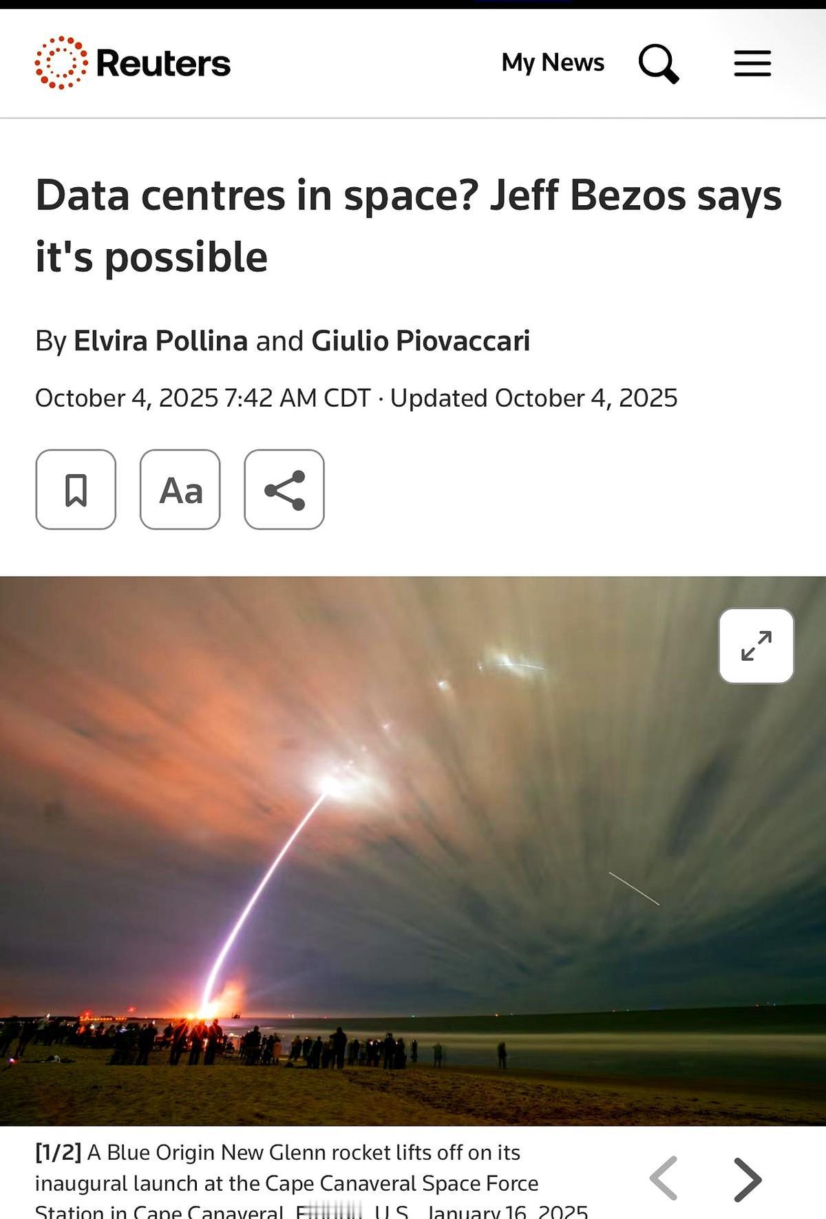 亚马逊创始人杰夫·贝索斯预测,未来 10 至 20 年内,人类可能会将大型 AI 训练数据中心迁移到太空。 其核心理由是太空拥有持续不断的太阳能、无天气干扰,可实现全天候满功率运行,从而显著降低算力成本。 贝索斯认为,太空算力甚至可能比地球更便宜。 这将成为人类第三次将关键基础设施迁往太空。 马斯克的星舰和星链可以完美的干这件事! 网友对此表达观点: 用星联来实现?nasa说星联2024年坠落了316颗,这么掉下去,英伟达可高兴了 还说AI最后拼的是电力,中国押注电力那不是又失算了 再过三年A丨的泡沫就破了,还看10~20年后[what]?笑话。 Ai算力放在太空,数据无线传输……不就是阿卡西记录吗…… 洋人真不行了,在太空布置电站的成本比的过在塔克拉玛干沙漠上铺光伏电站吗? 这就好比洋人搞星链,咱们把5G基站铺满中国,谁比较高效、照顾的人多? 建议美国人赶紧投降,由中国来统治世界,兴许可以照顾一下洋人[我想静静]