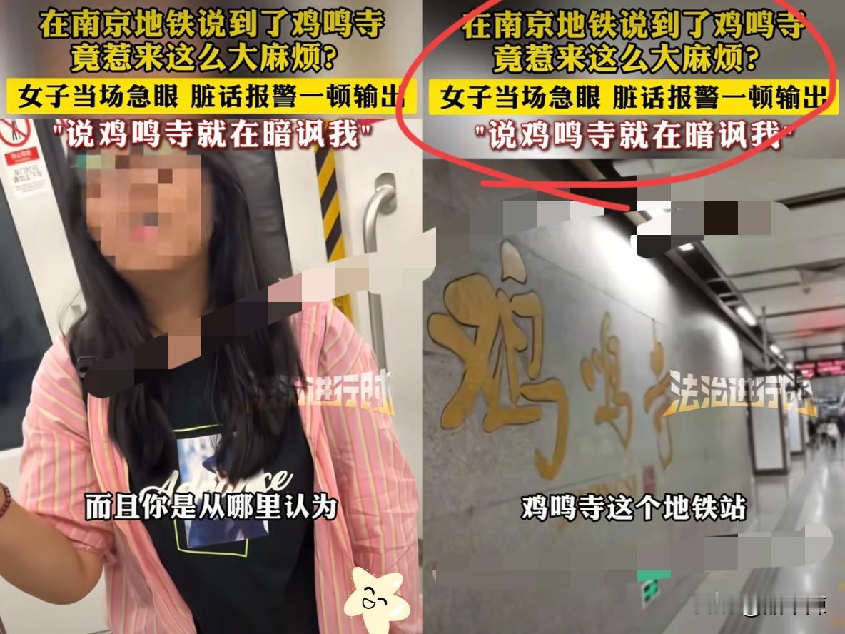 这“女权”打的鼻青脸肿啊! 近期,南京地铁里,快到“鸡鸣寺”站时,一家人提了一嘴,旁边女士立马炸锅! 一口咬定被暗讽,当场掏手机报警,这反应快得让人怀疑是不是提前演练过! 要知道,鸡鸣寺叫了几百年,河北鸡鸣驿更是老祖宗传下来的地名,难不成古人起名时还得穿越过来问你同不同意?照这逻辑,黑龙江双鸭山市岂不是得天天被围着投诉? 最离谱的是报假警这事儿,一句“误会”就翻篇,成本低到离谱! 公共资源是给真有急事的人用的,不是谁闹脾气都能拿来挥霍的,这种明显浪费警力的行为,就该按规矩追究责任,不然以后谁都敢拿报警当“撒气阀”! 说真的,真正的权益维护从来不是“玻璃心”式碰瓷,把正常聊天都当冒犯,只会让真正需要帮助的人被质疑! 大家对此怎么看?