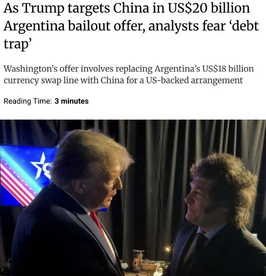 外媒:美国提出以200亿美元援助阿根廷,条件是阿根廷取消其与中国180亿美元的货币互换协议。 该货币互换协议自2009年建立,帮助阿根廷管理外汇储备、支付进口费用及偿还国际债务。 美国这招太不地道了,明摆着拿200亿美元当诱饵,逼阿根廷撕毁和中国的货币互换协议,这哪是援助啊,分明是趁火打劫! 阿根廷现在的处境有多难?2025年上半年,比索兑美元汇率直接跌掉60%还多,1比索换人民币连5厘都不到,老百姓手里的钱眨个眼就缩水大半。外汇储备看着还有218亿美元,可外债却高达2860多亿,相当于手里攥着十块钱要还一百块的债,完全是杯水车薪。 更要命的是,通胀率直奔200%而去,全国一半以上人口都跌进了贫困里,经济还得再衰退3%,这种时候,谁给点真金白银都像救命稻草,美国就是掐准了这个时机上门的。 可偏偏中阿那笔货币互换协议,就是阿根廷手里最管用的“稳压器”。从2009年第一次签协议开始,这笔钱就没让阿根廷掉过链子,后来几次续签加到了1300亿元人民币的规模,相当于给阿根廷的外汇储备上了道保险。 2023年阿根廷实在扛不住的时候,直接动用了协议里350亿元人民币的额度,硬是把国际收支给稳住了——那时候,不管是付中国的进口货款,还是还到期的外债,全靠这笔钱周转,要是没它,外汇储备早就见底了。 说白了,中阿这协议是纯粹的金融互助,没有任何附加条件,阿根廷想用人民币付货款就用,想换外汇应急就换,完全按需调配。2024年上半年阿根廷对华出口涨了32.7%,贸易额比对美出口还多7亿,这些生意很多都是用人民币结算的,不用再费劲巴力地抢美元。 中国企业还实打实砸钱进去,光是锂矿领域就投了18亿美元,赣锋锂业给的1.3亿美元贷款不仅利率低,还承诺6年包销一半产量,紫金矿业的锂盐湖项目明年投产就能年产5万吨碳酸锂,这些都是能长期造血的真合作。 可美国那200亿美元看着多,实则全是套路。早在上世纪80年代,美国就用类似招数坑过拉美国家,先是收紧货币政策引爆债务危机,再抛出“华盛顿共识”逼着各国私有化、砍福利,结果让拉美陷入“失去的十年”,阿根廷2001年债务危机就是这么来的。 这次也没新鲜的,美国国务院特使早就放话,不取消中阿协议就不支持阿根廷向IMF借钱,等于拿救命钱当要挟。美国自己都承认这钱是让阿根廷“明确与华盛顿的结盟关系”,说白了就是买通阿根廷跟中国翻脸,这哪是援助,分明是交保护费的霸王条款。 退一万步讲,就算阿根廷愿意当这个“冤大头”,这钱就一定管用吗?答案不言自明!光是2026年到期的外债就有足足230多亿,要是真听美国的撕了协议,先不说对华贸易结算得崩盘,光是每月的进口货款和外债利息就能把阿根廷压垮。 米莱之前再怎么亲美,也得务实——2025年明明放宽进口限制,中国商品进口额直接翻倍,因为他心里清楚,跟中国做生意能拿到真金白银,跟美国只能拿空头支票换枷锁。 美国这招说白了就是霸权思维作祟,见不得中国在拉美搞成实事。可阿根廷不是傻子,一边是能救急、能造血、没附加条件的人民币协议,一边是带政治枷锁、可能重蹈“失去十年”覆辙的美元援助,选哪个用脚都能想明白。 毕竟经济账算得清,谁是真心帮忙,谁是趁火打劫,阿根廷心里门儿清。